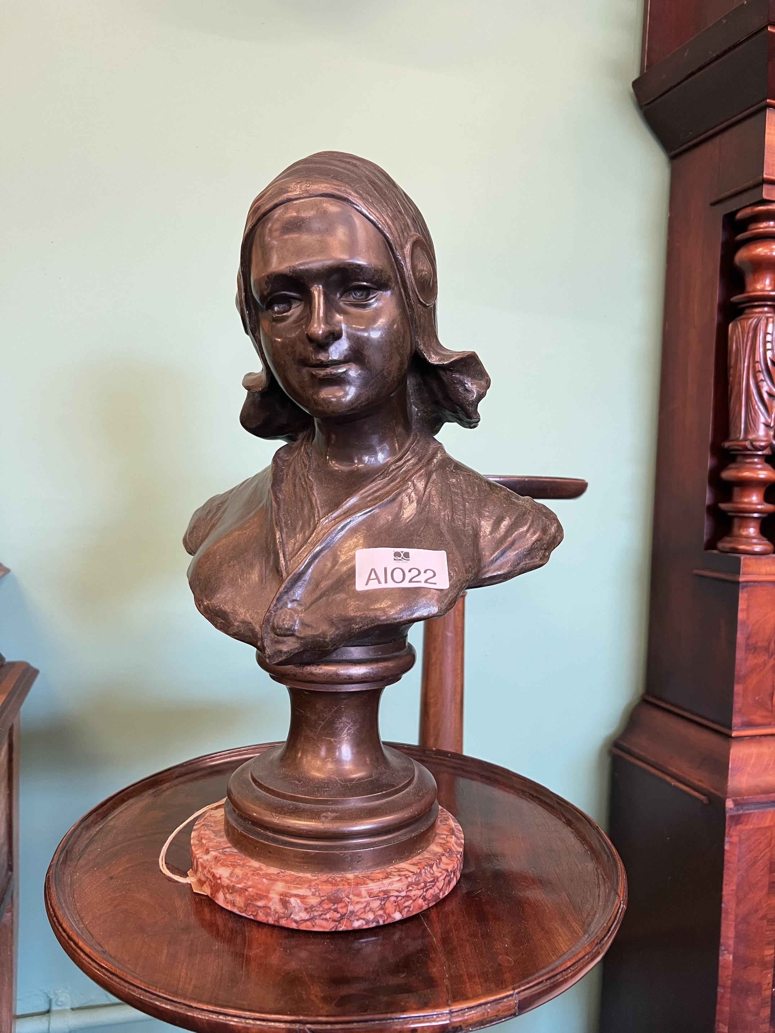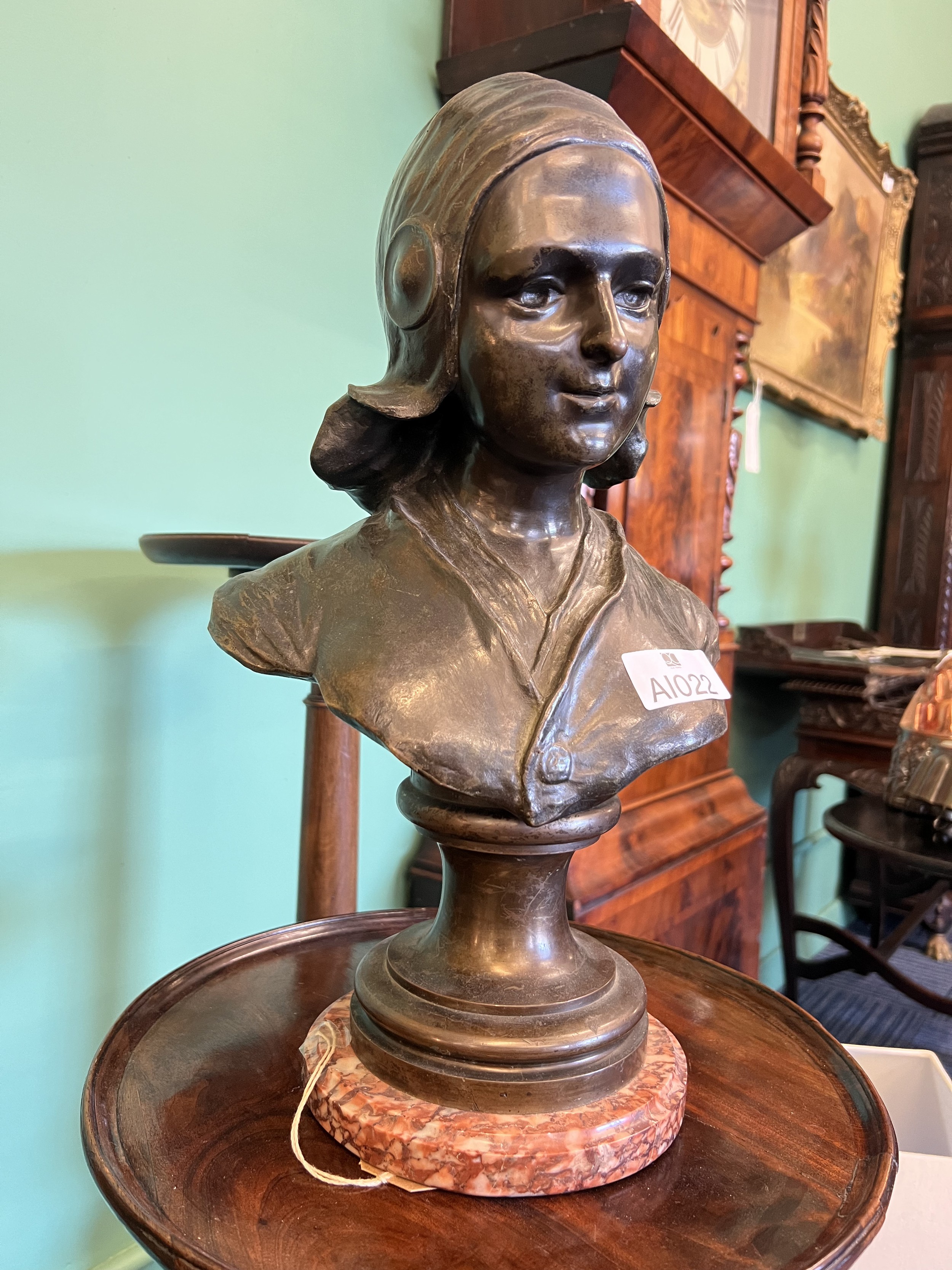 Bronze bust by Auguste Bija 1872 - 1957 mounted on marble base