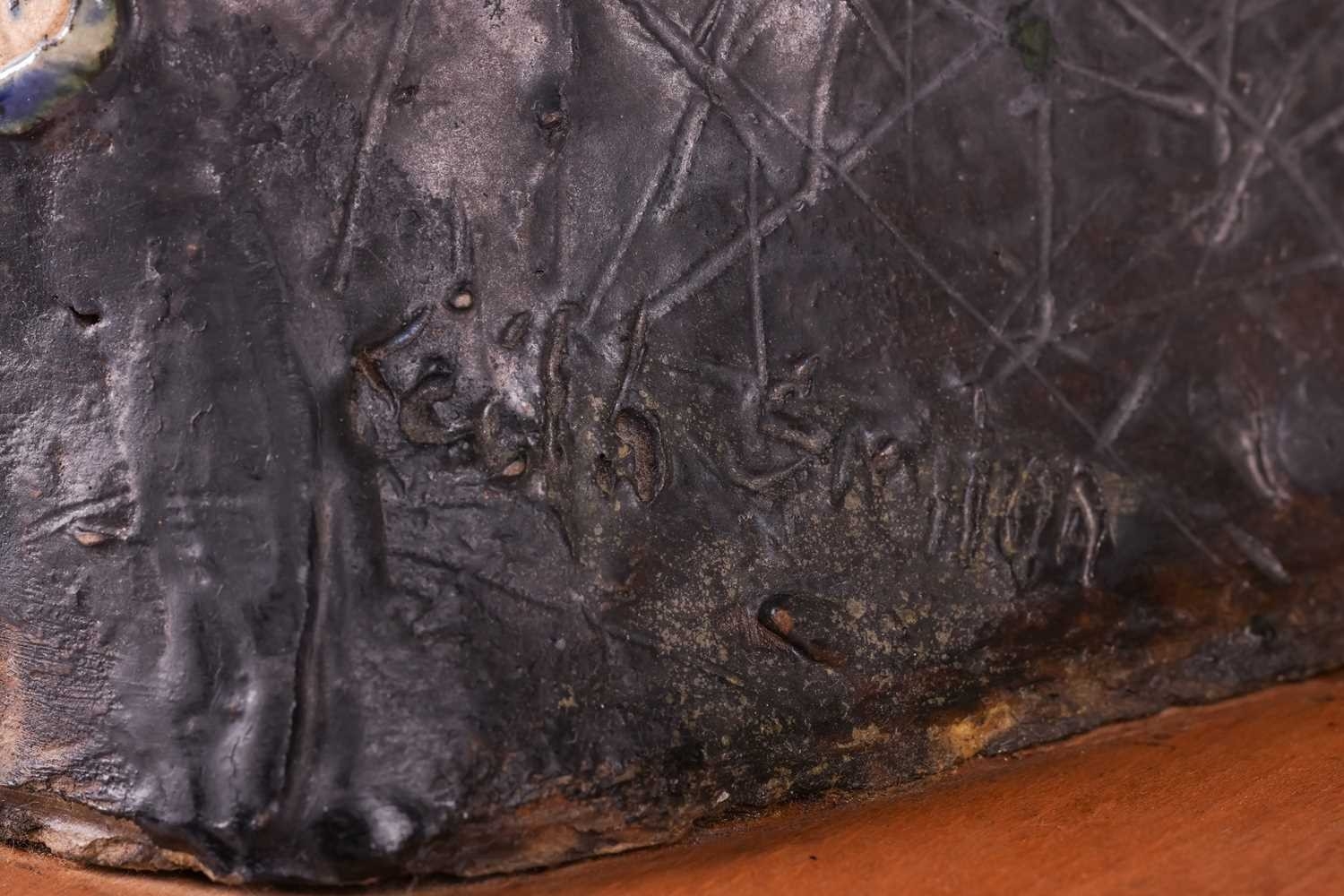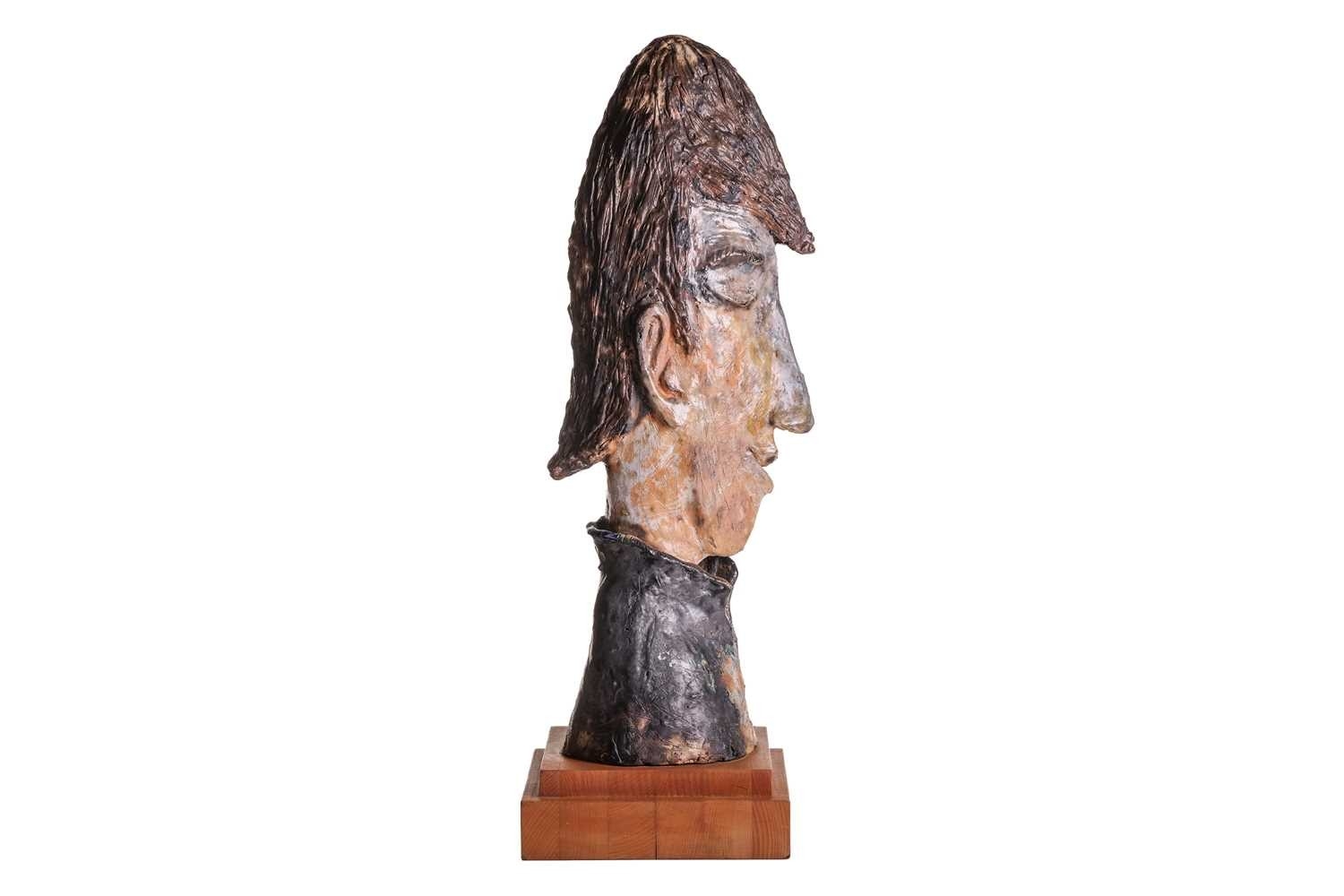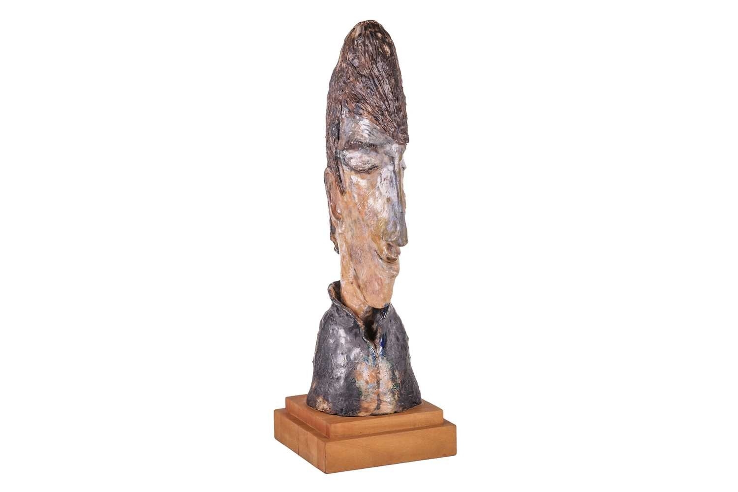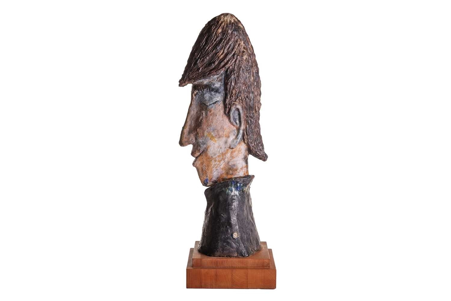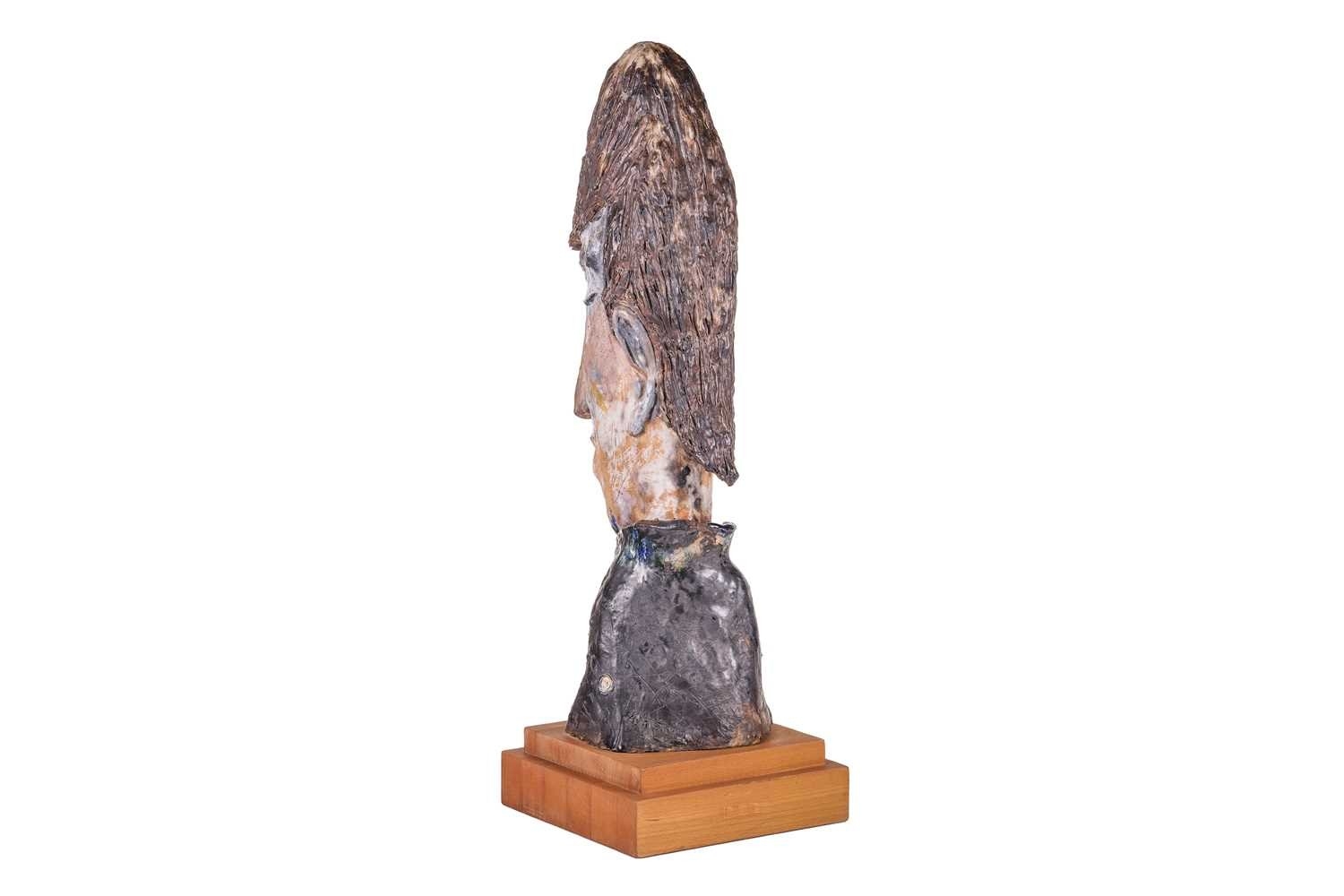 † Guy Routledge, bust of a man, stoneware sculpture on a stepped square wooden base, signed, 84 cm high.