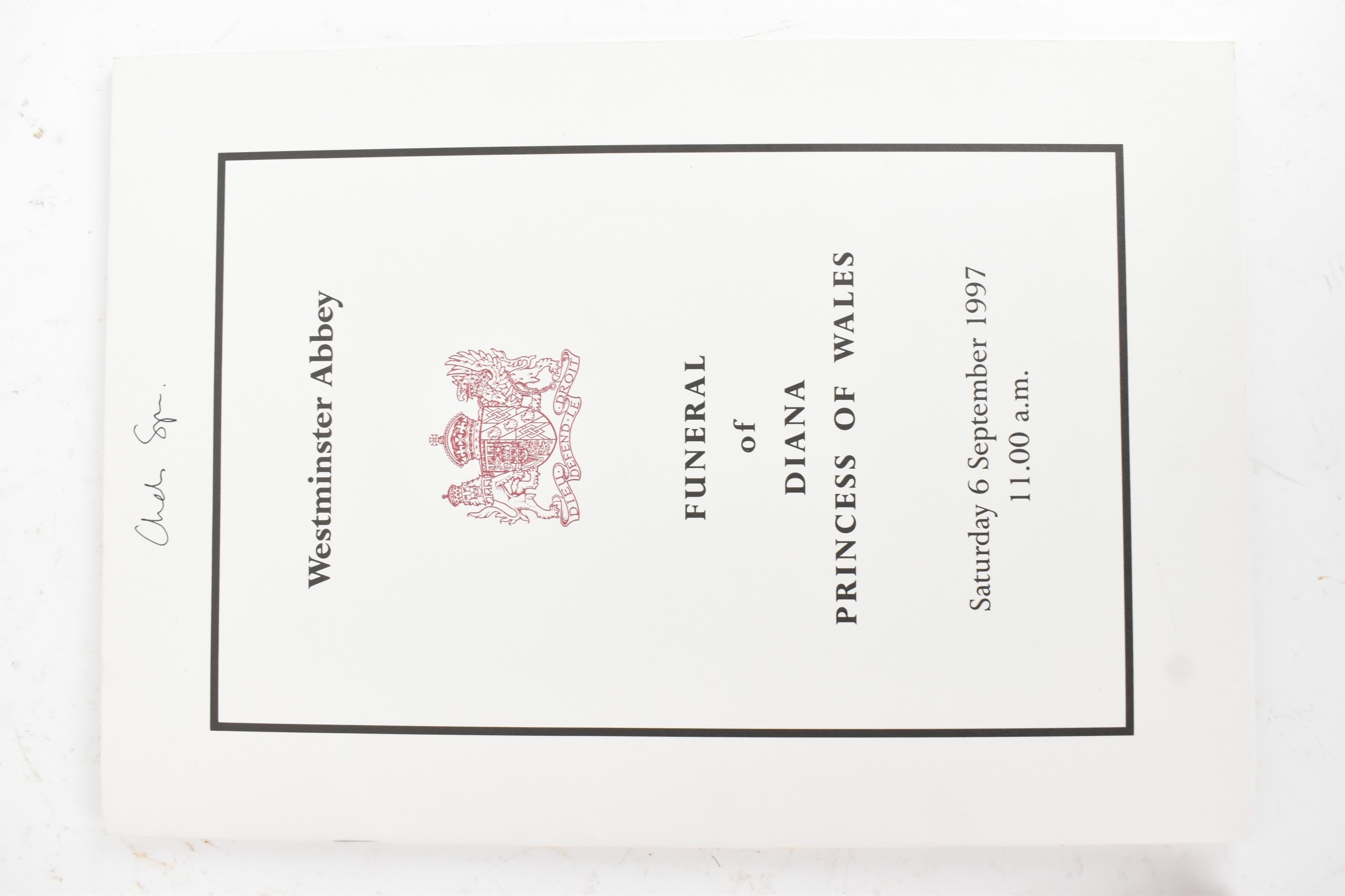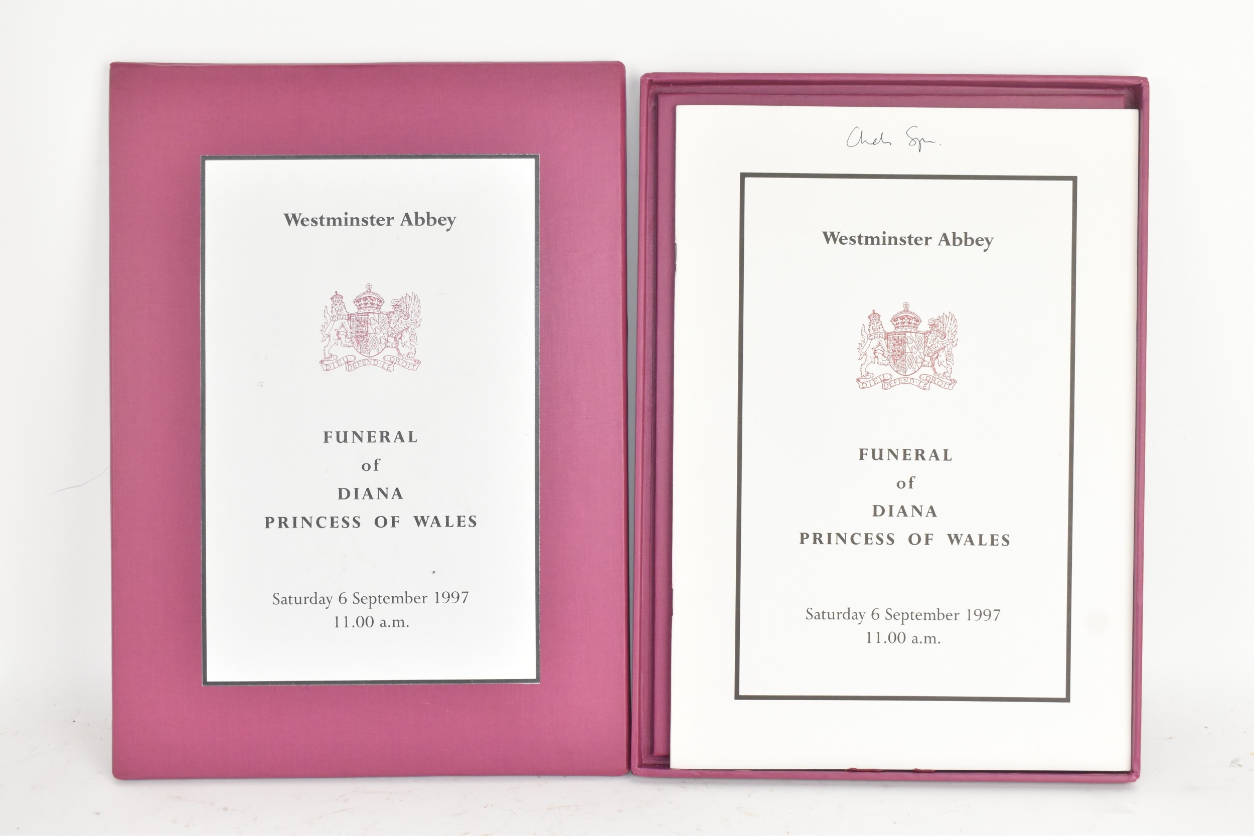 Royal Memorabilia - The Funeral of Diana Princess of Wales - Saturday 6th September 1997 funeral service programme, boxed and signed by her brother Charles Spencer, with sales receipt