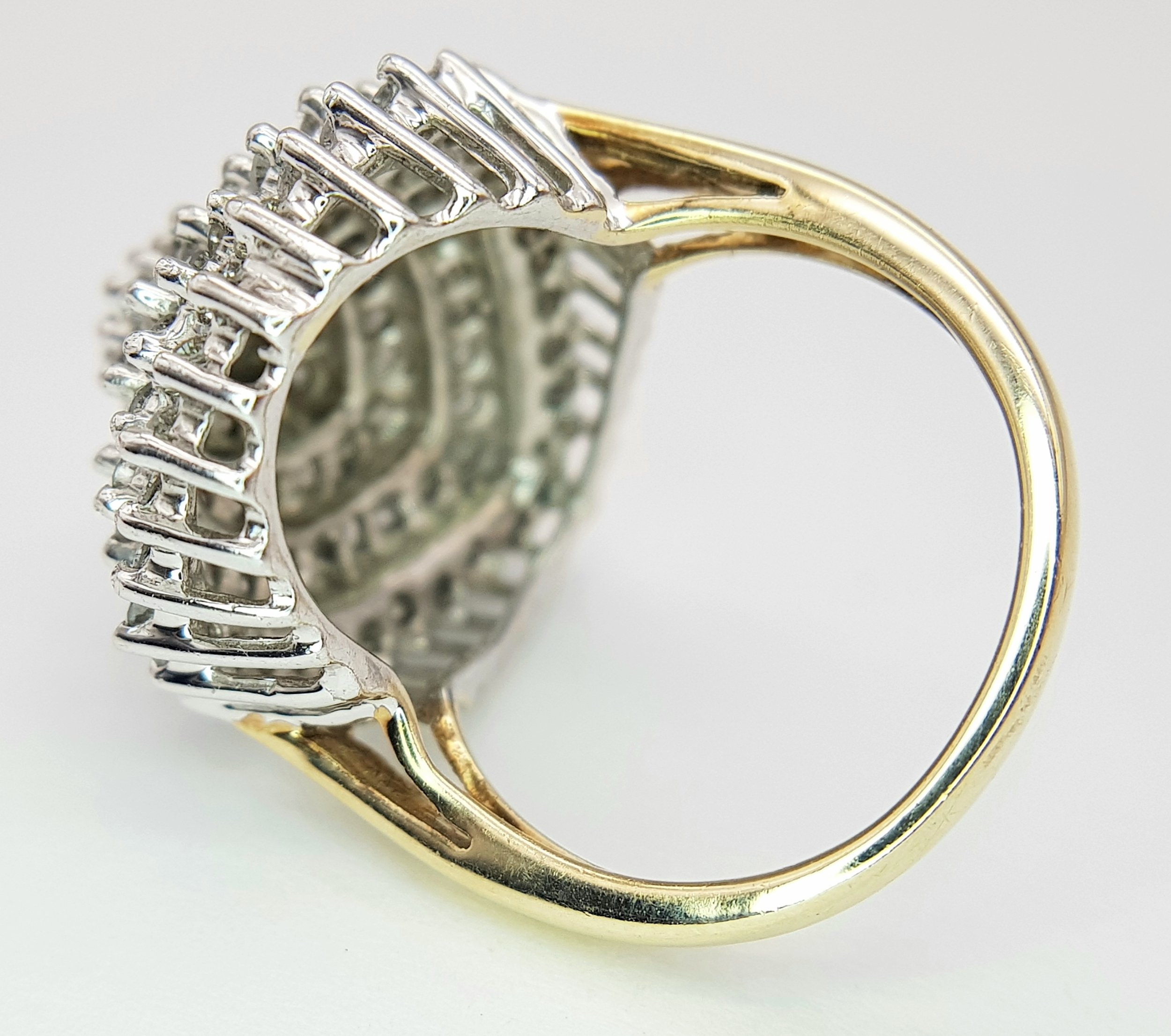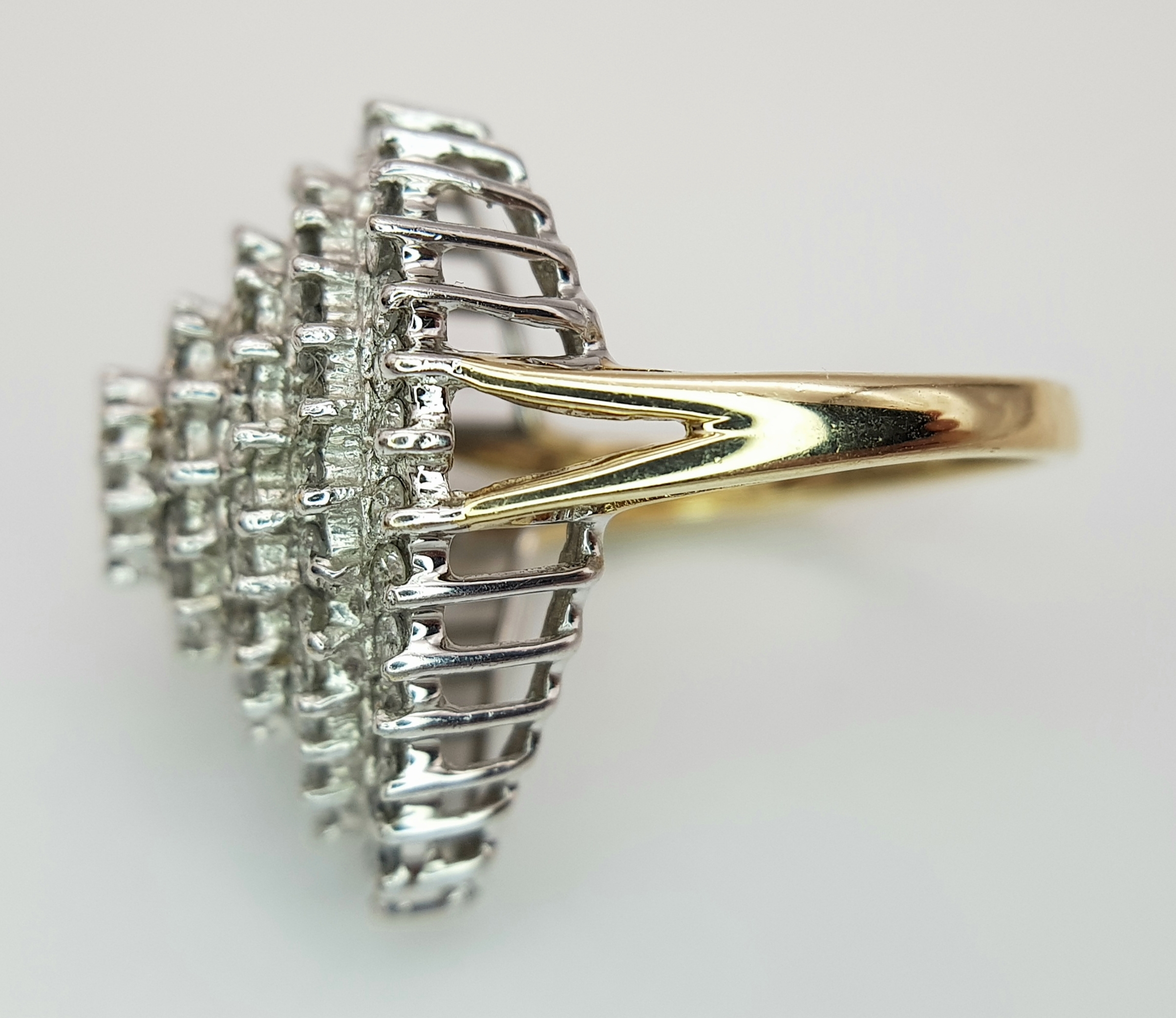 A 9K YELLOW GOLD PEAR SHAPED DIAMOND CLUSTER RING 0.70CT , 7.2G TOTAL WEIGHT, SIZE N. REF: SC 3025