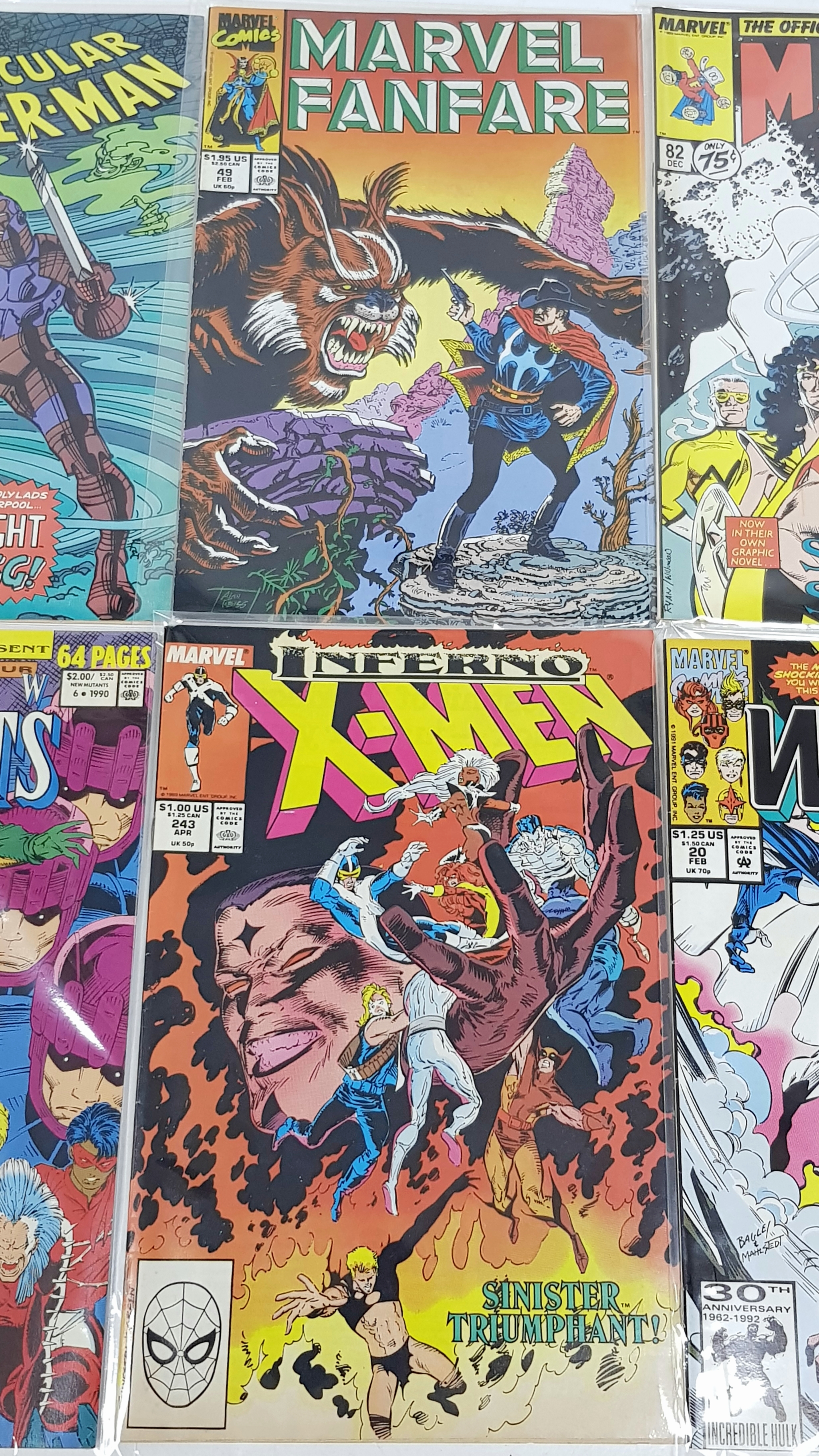 Ten Marvel Mixed Comics - Most Being in Very Fine to Very Fine Plus Grade. All individually wrapped in plastic. Please refer to photos for finer details.