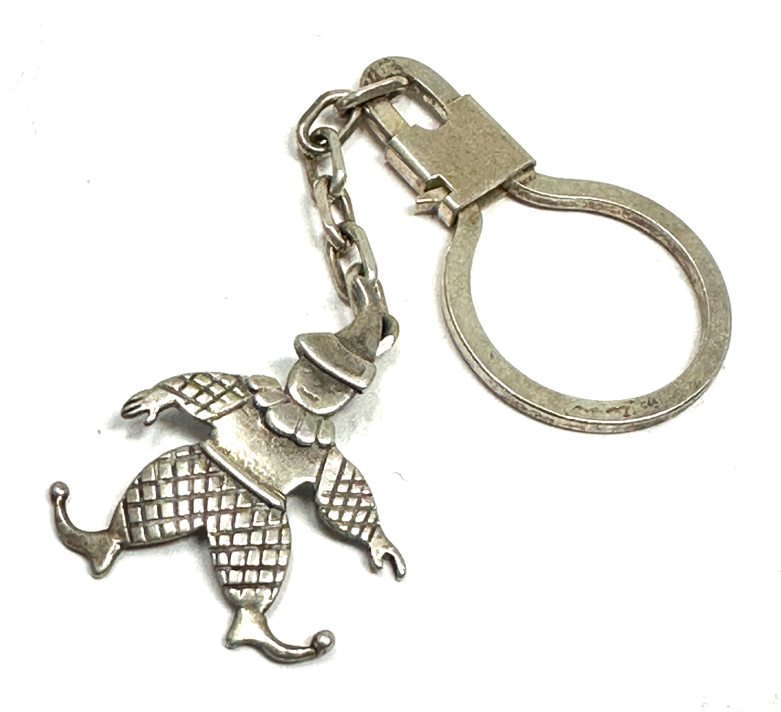 Vintage silver key ring with clown pendant