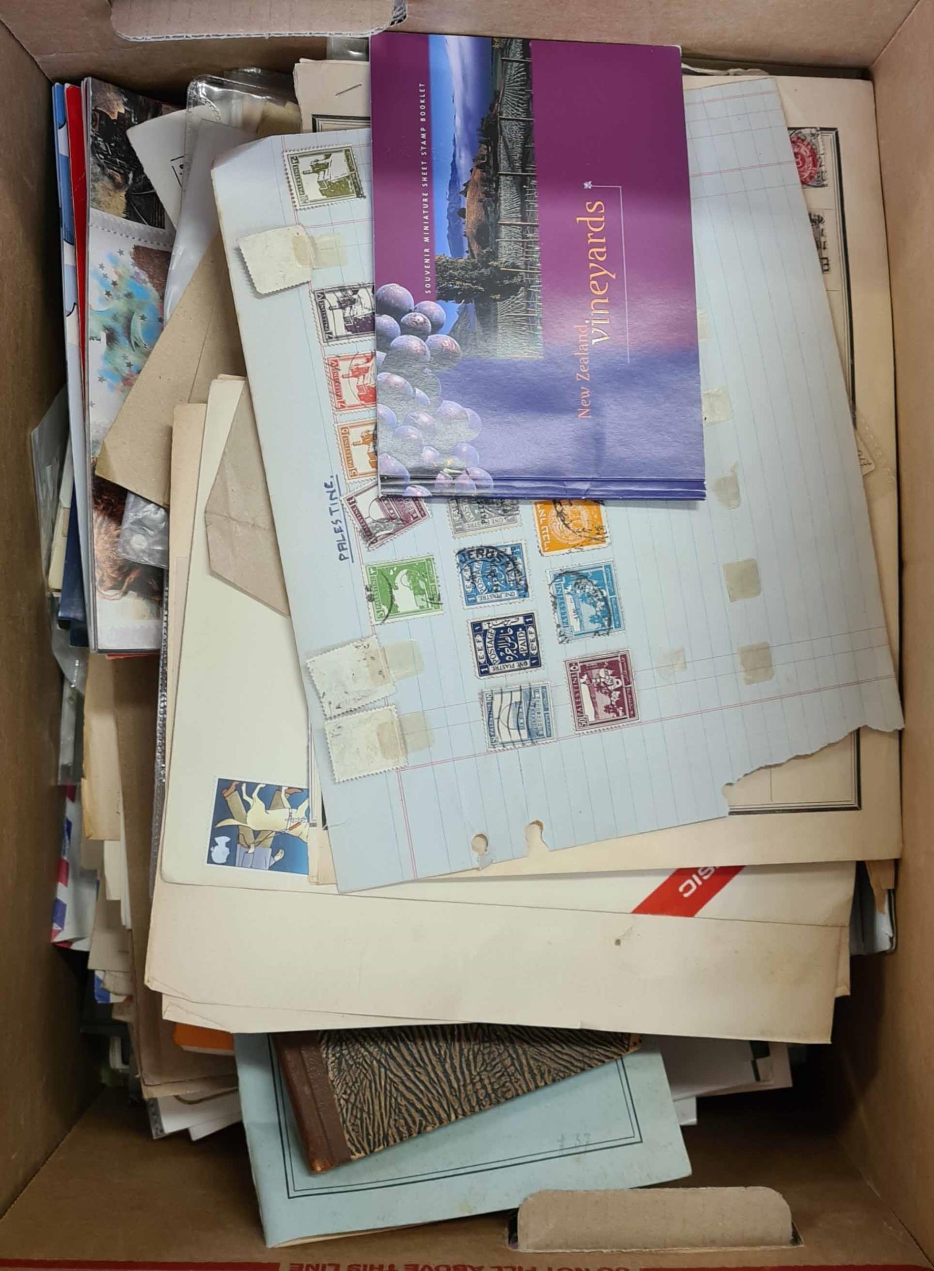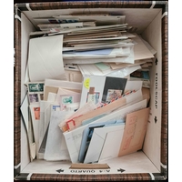 ACCUMULATION OF WORLDWIDE STAMPS & COVERS: Large carton holding a diverse, early to modern, mint & used range of stamps & mini sheets, etc. presented in packets, club books, stock cards, old album leaves, etc. includes a range of early 20h C. Romania covers. Lot inc. a range of mid-20th C. mint sheets e.g. Greece. (very many 100s stamps & covers)