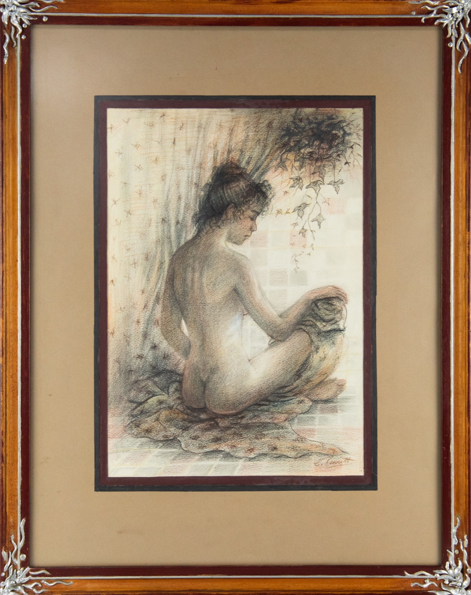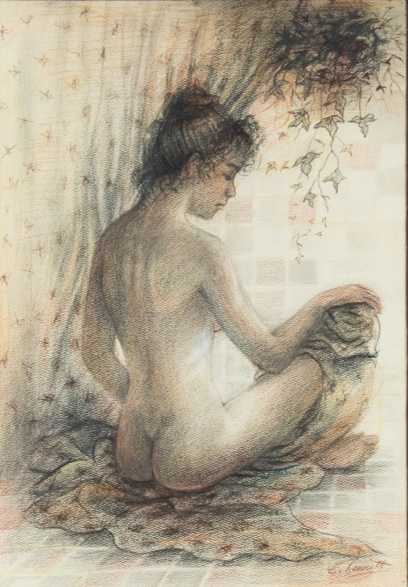 together with a Conte Crayon drawing of a female nude, signed C BENNETT;