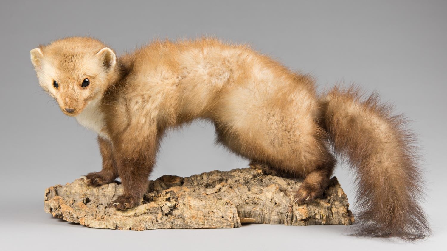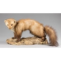A LATE 20TH CENTURY TAXIDERMY PINE MARTEN UPON A NATURALISTIC BASE. (w 48cm)