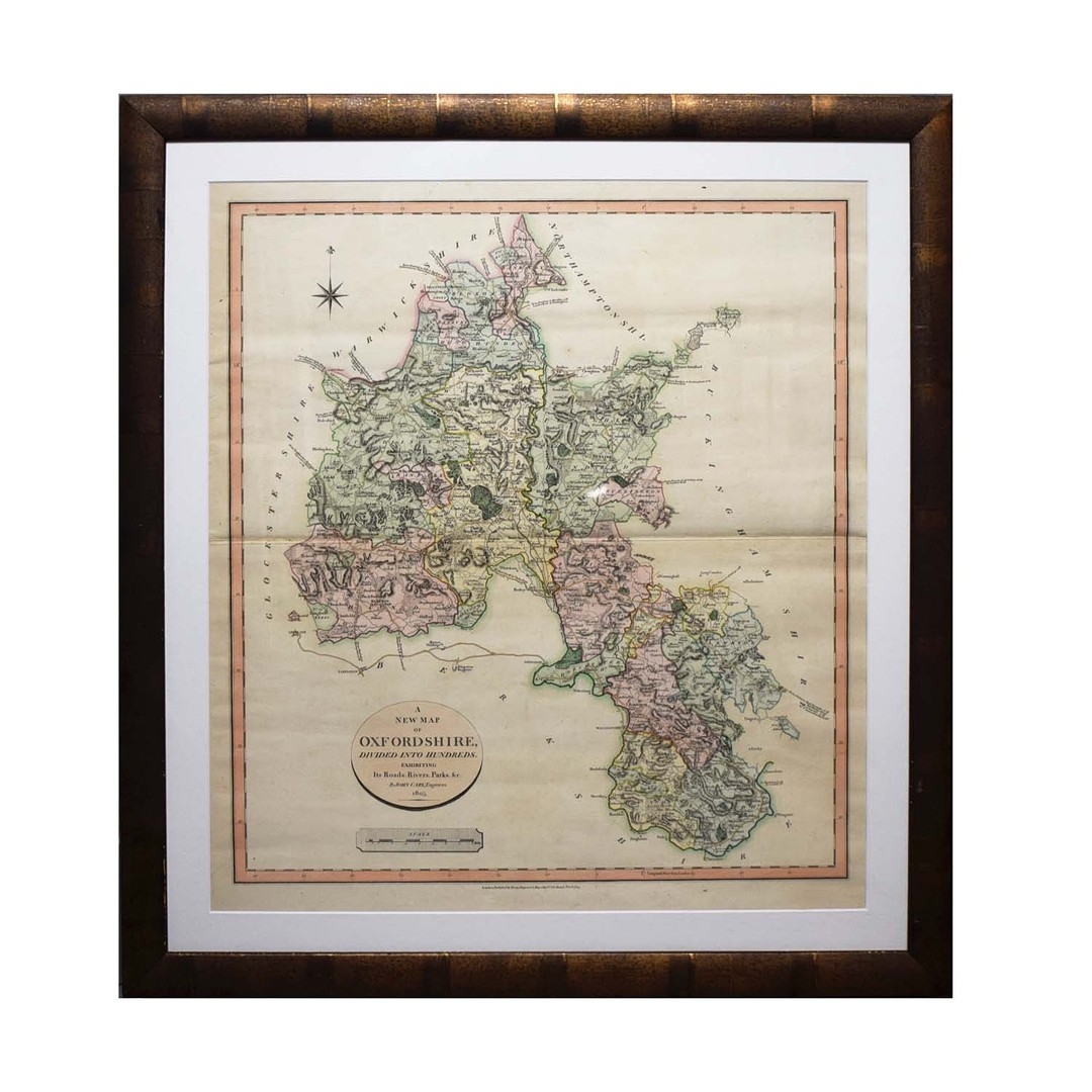 JOHN CARY (C. 1754 1835). A NEW MAP OF OXFORDSHIRE. Hand coloured engraving, 57cms x 51 cms, Framed.