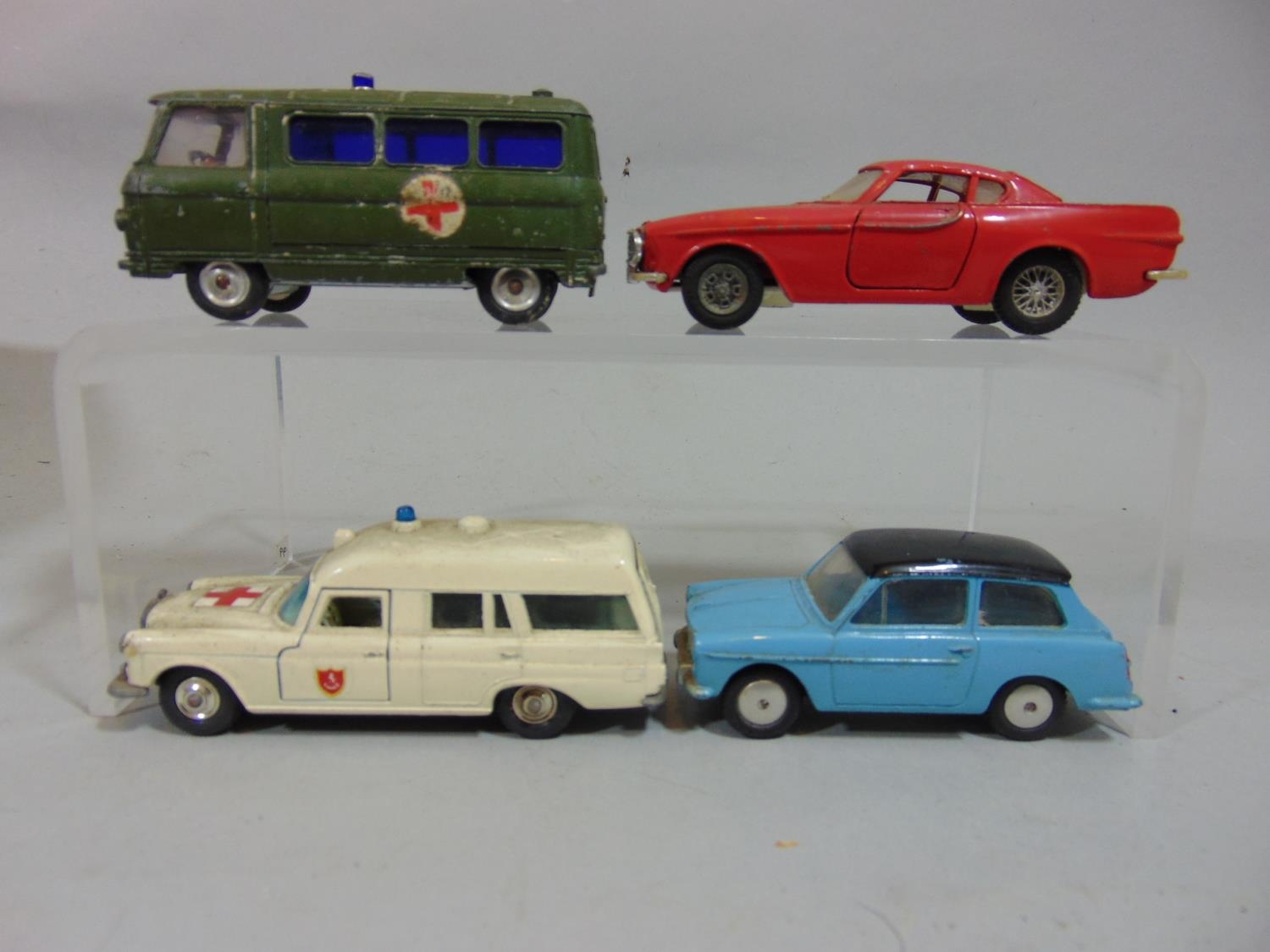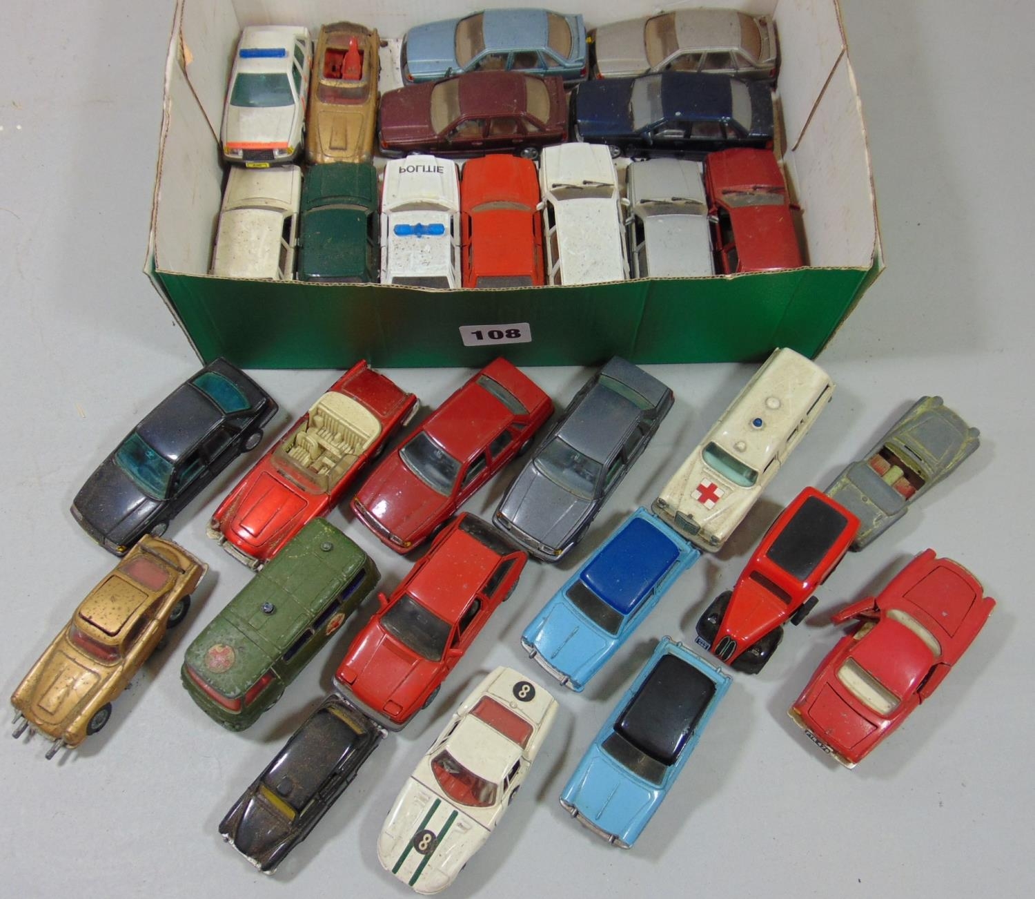 28 unboxed model vehicles includig a Corgi commer van, James Bond Aston Martin, Triumph TR3, Dinky Aston Martin DB5