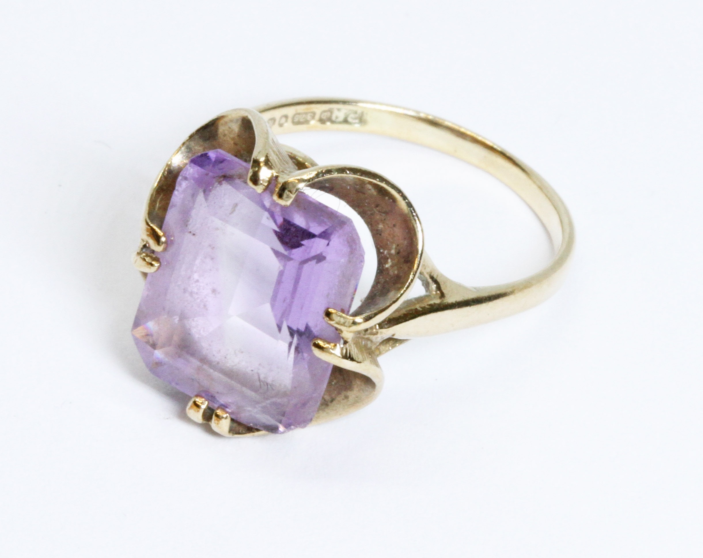 A hallmarked 9ct gold amethyst ring, gross weight 3g, size M.