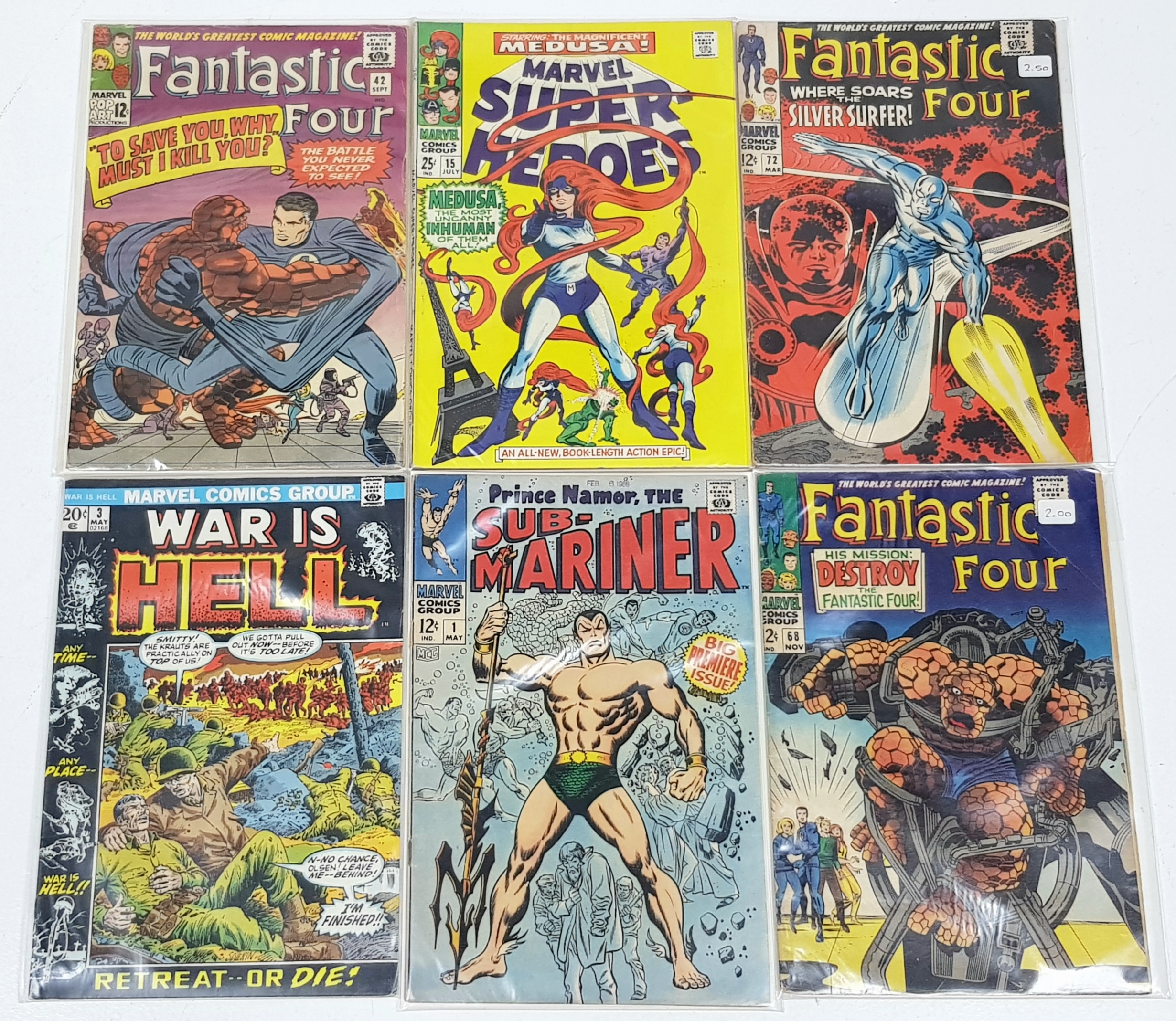 Six Vintage Marvel Comics Including 3 x Fantastic Four. Please refer to photos for finer points and condition.