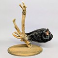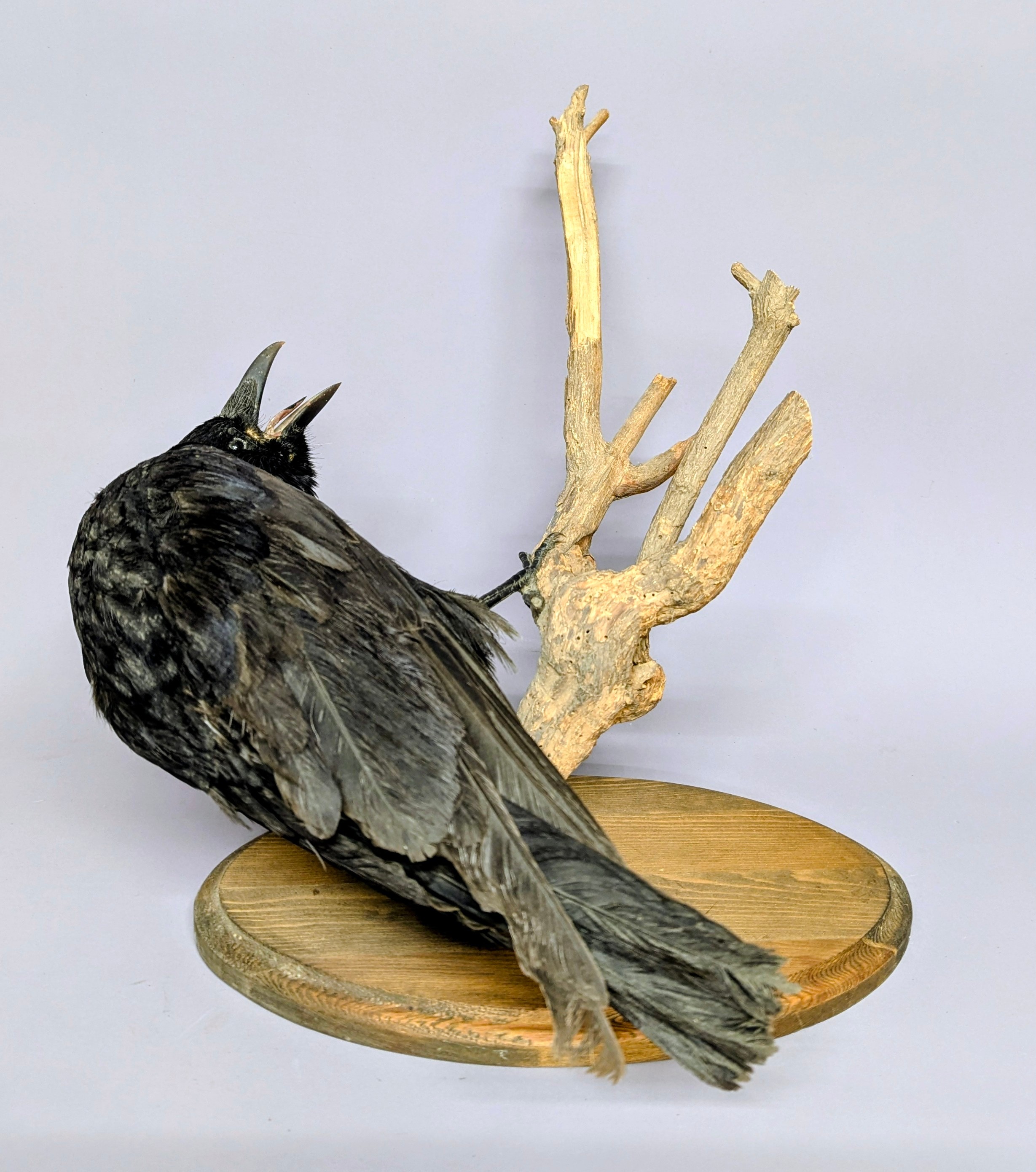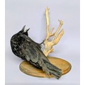 Taxidermy - a Carrion Crow, posed cawing on a branch, stepped oval wall mount, 44cm