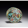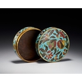 A CHINESE CLOISONNE ENAMEL POMEGRANATE CIRCULAR BOX AND COVER