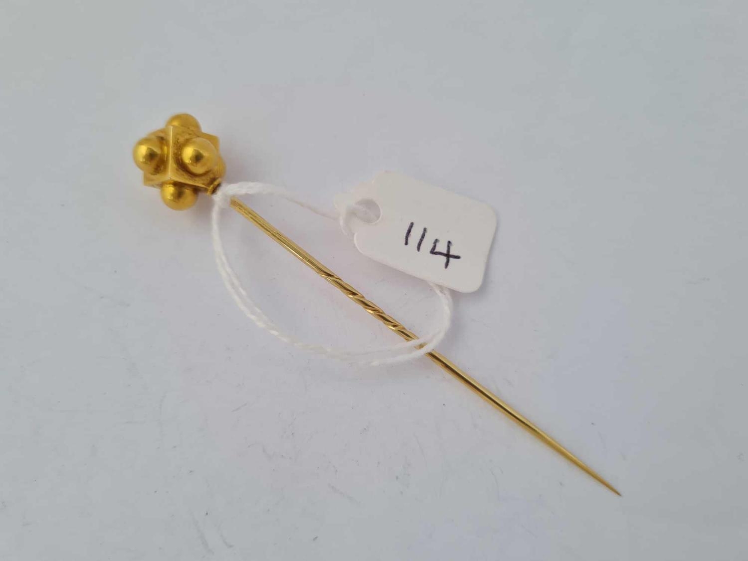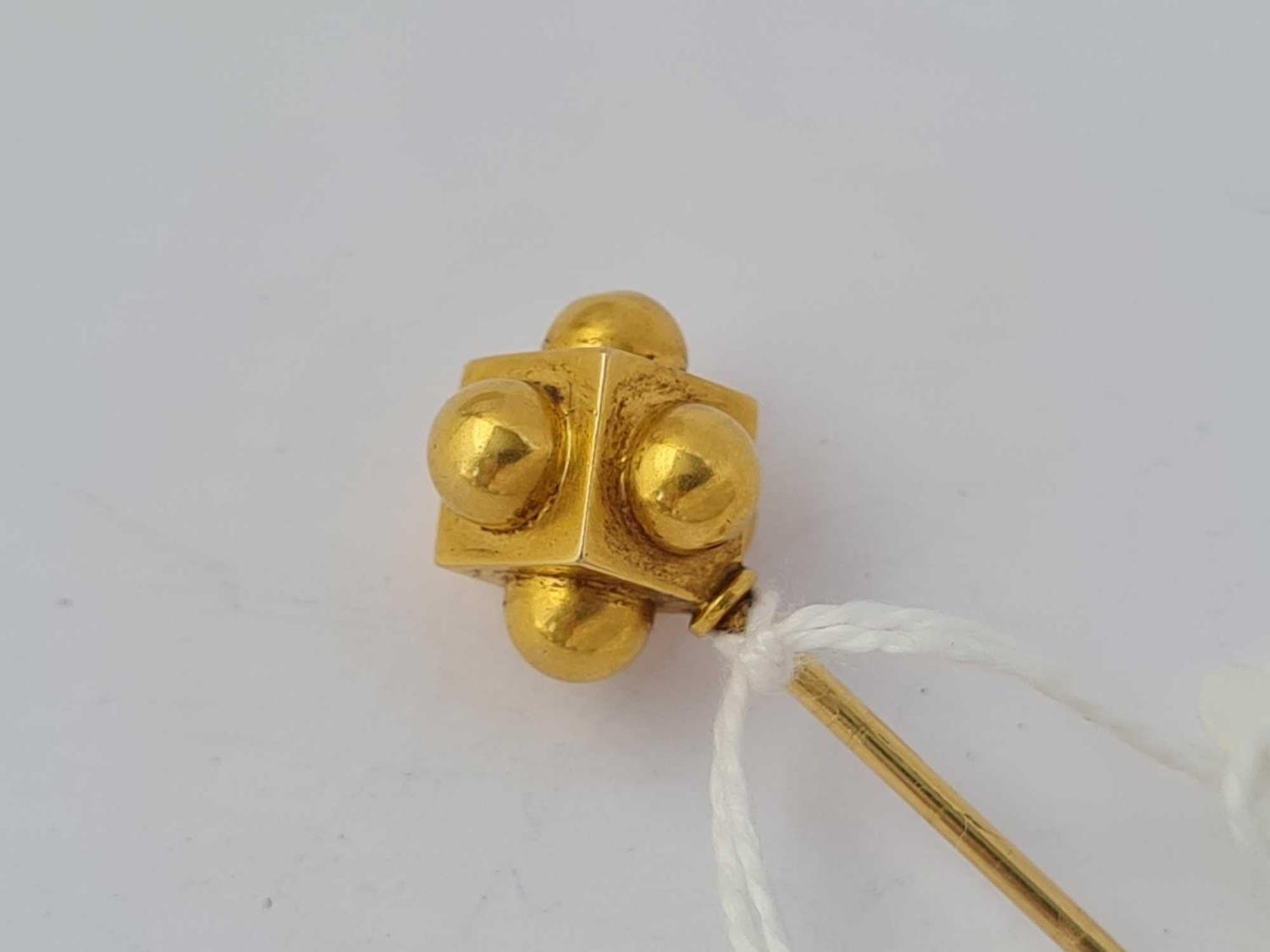 A unusual antique Victorian stick pin designed as a cube with added hemispheres 15 ct gold