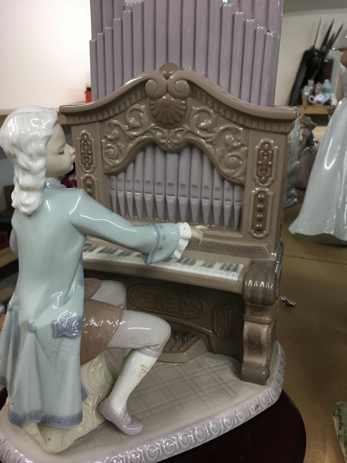 A Lladro figure of a organ player .28 cm .