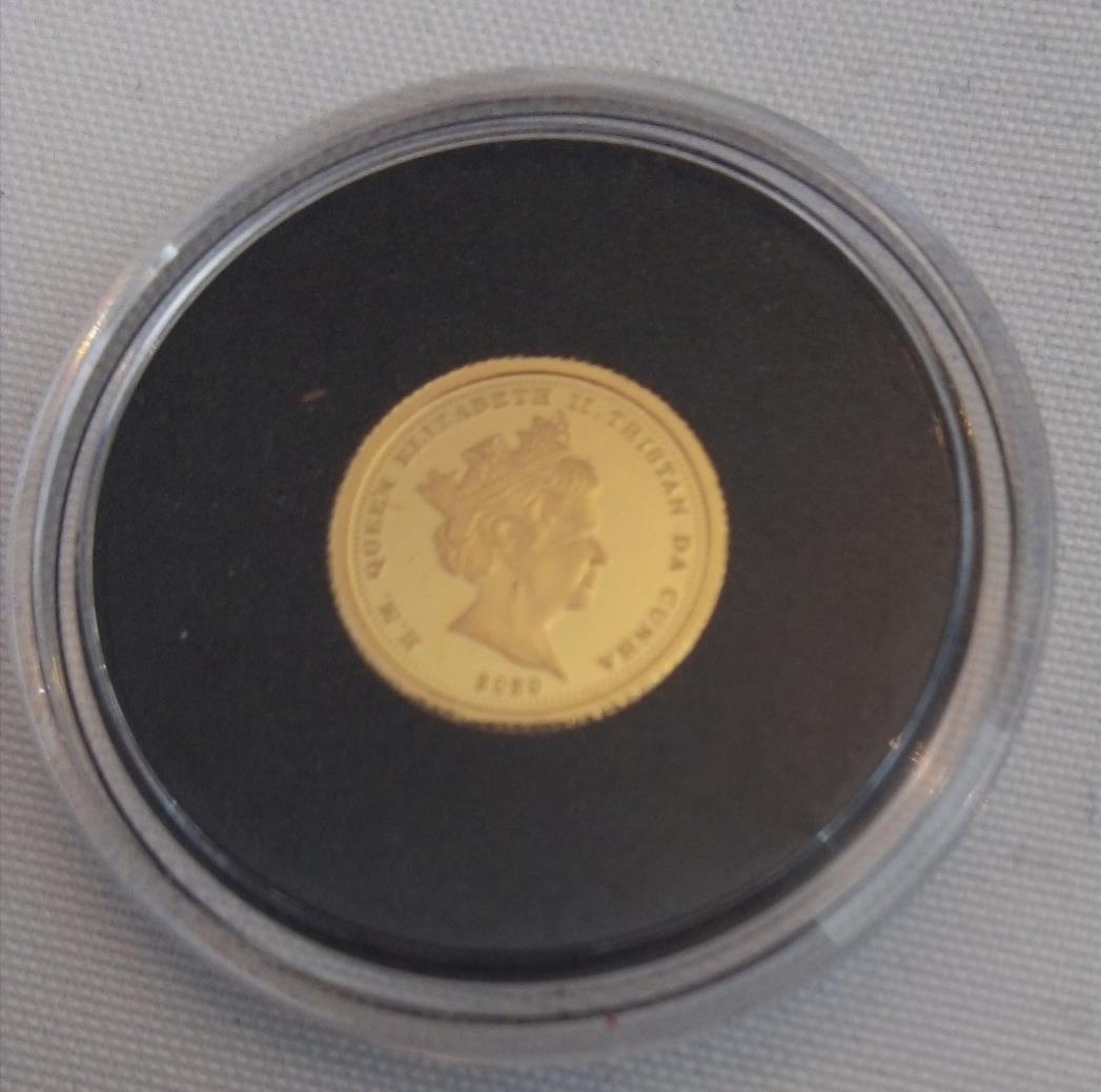A 24CT GOLD FIVE POUND PROOF COIN, DATED 2020