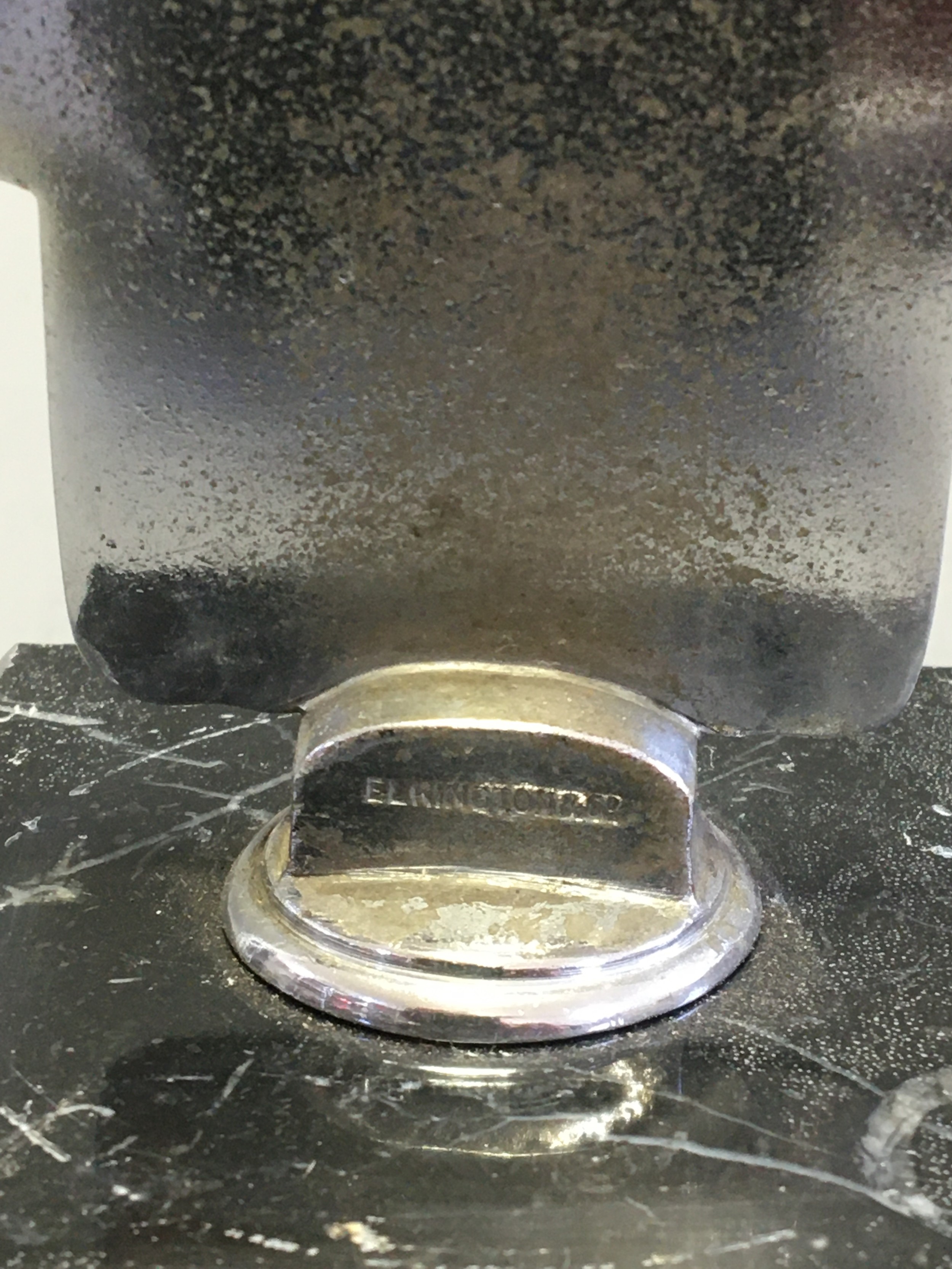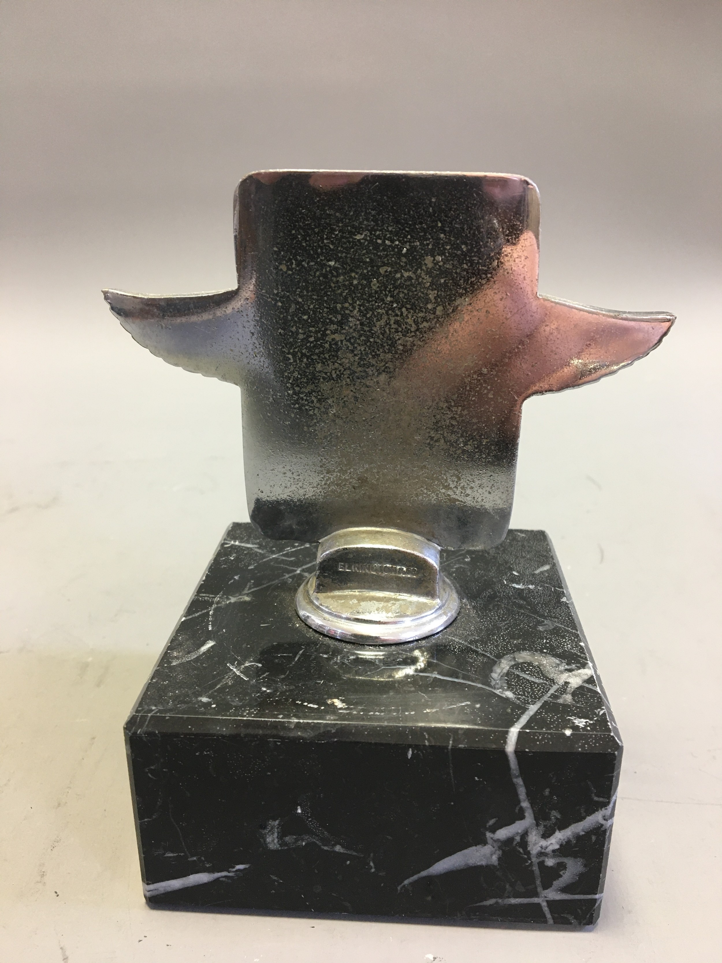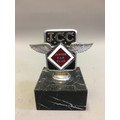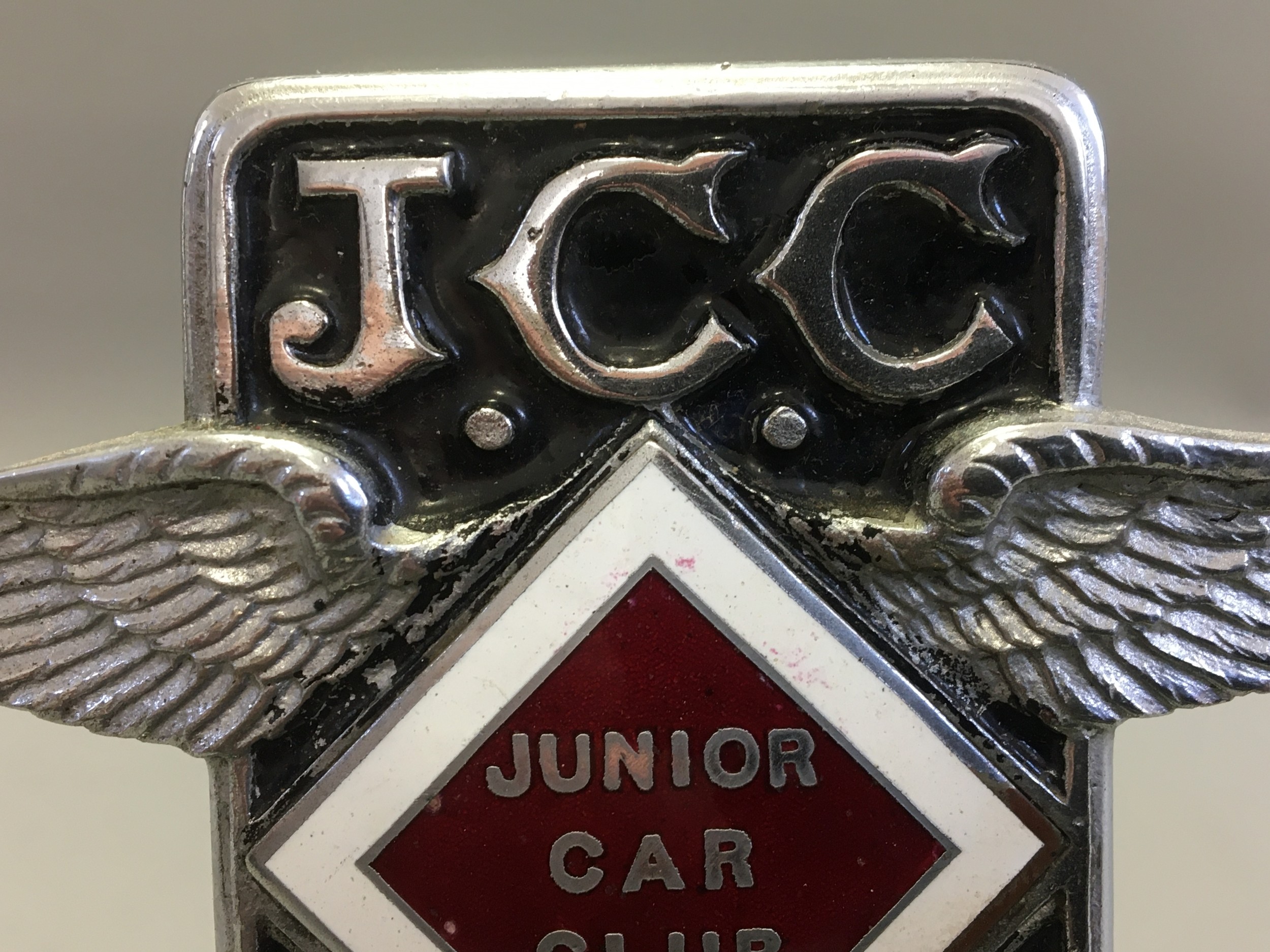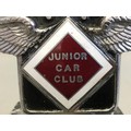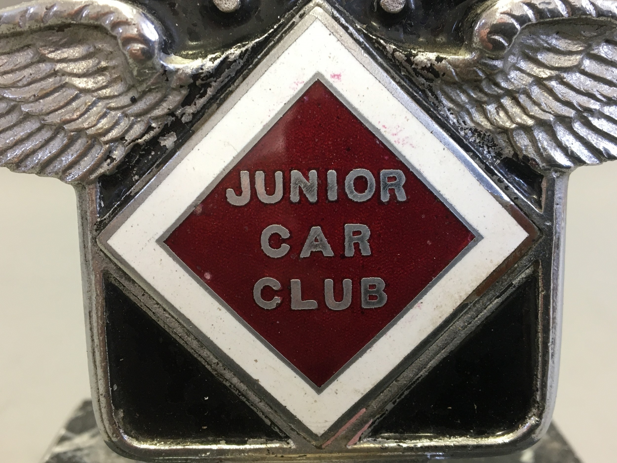 Circa 1930 J.C.C Junior Car Club Ser No J1763 Elkington & Co Chrome and Enamel Car Badge/Mascot. An early pre-war member's car badge; enamel on chromed brass with diamond format badge motif to centre. Mounted on a Marble Base
