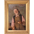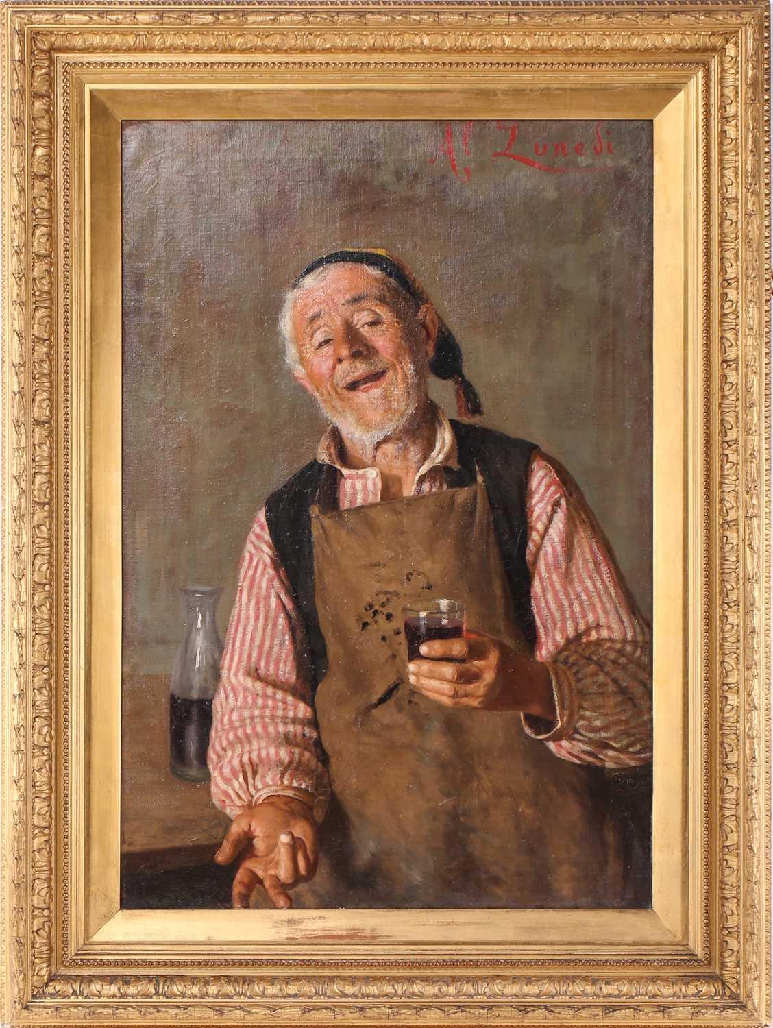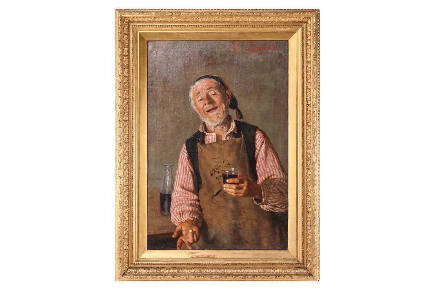 A.P. Lunedi (19th century Italian), portrait of an elderly craftsman with a glass of wine, signed top right, oil on canvas, 77 x 52 cm, in a giltwood frame 99 x 74 cm