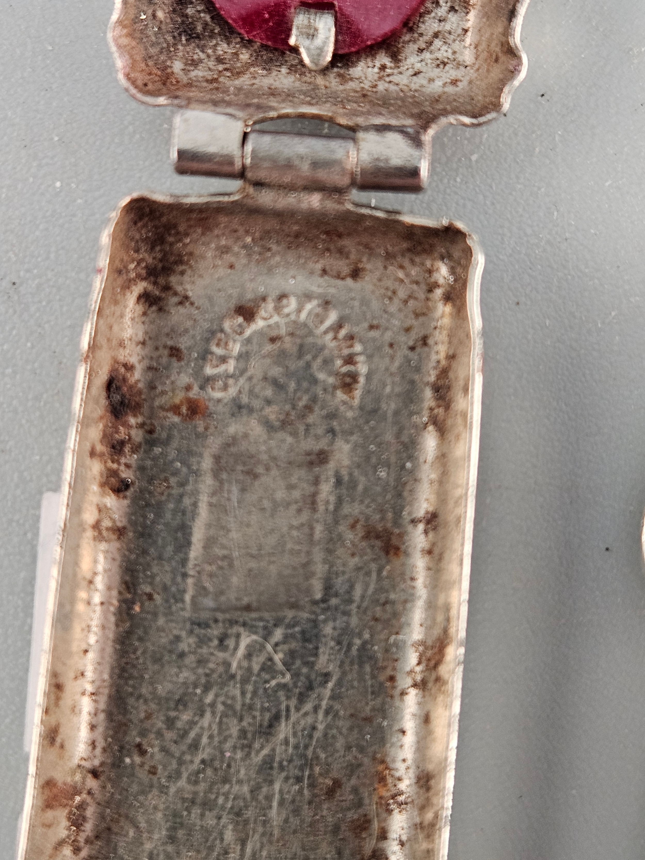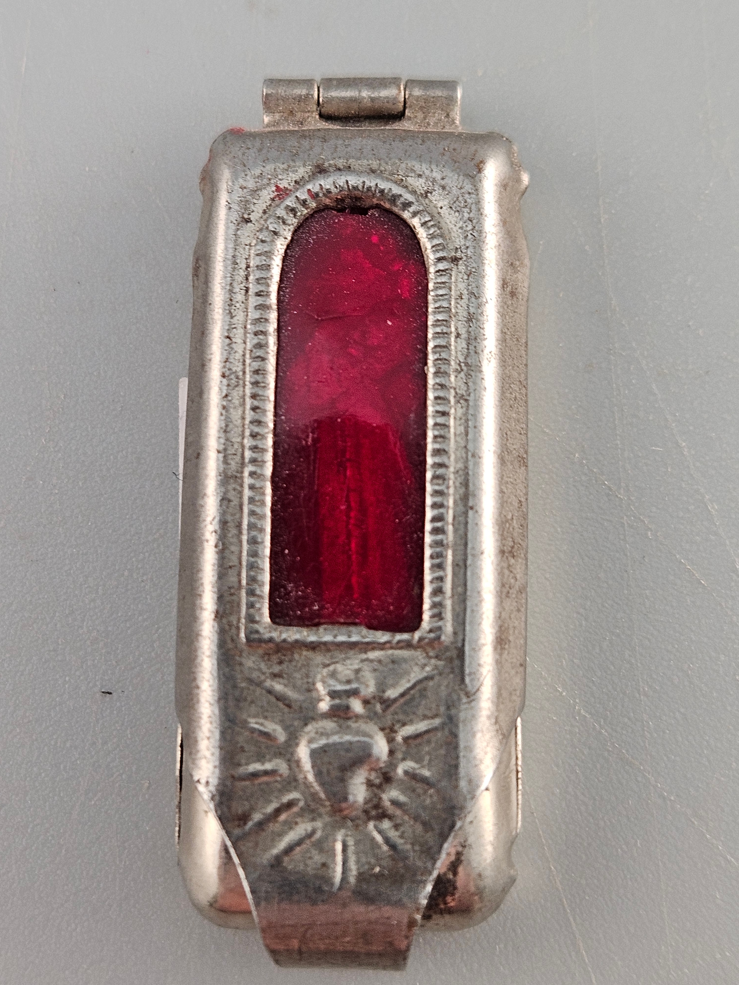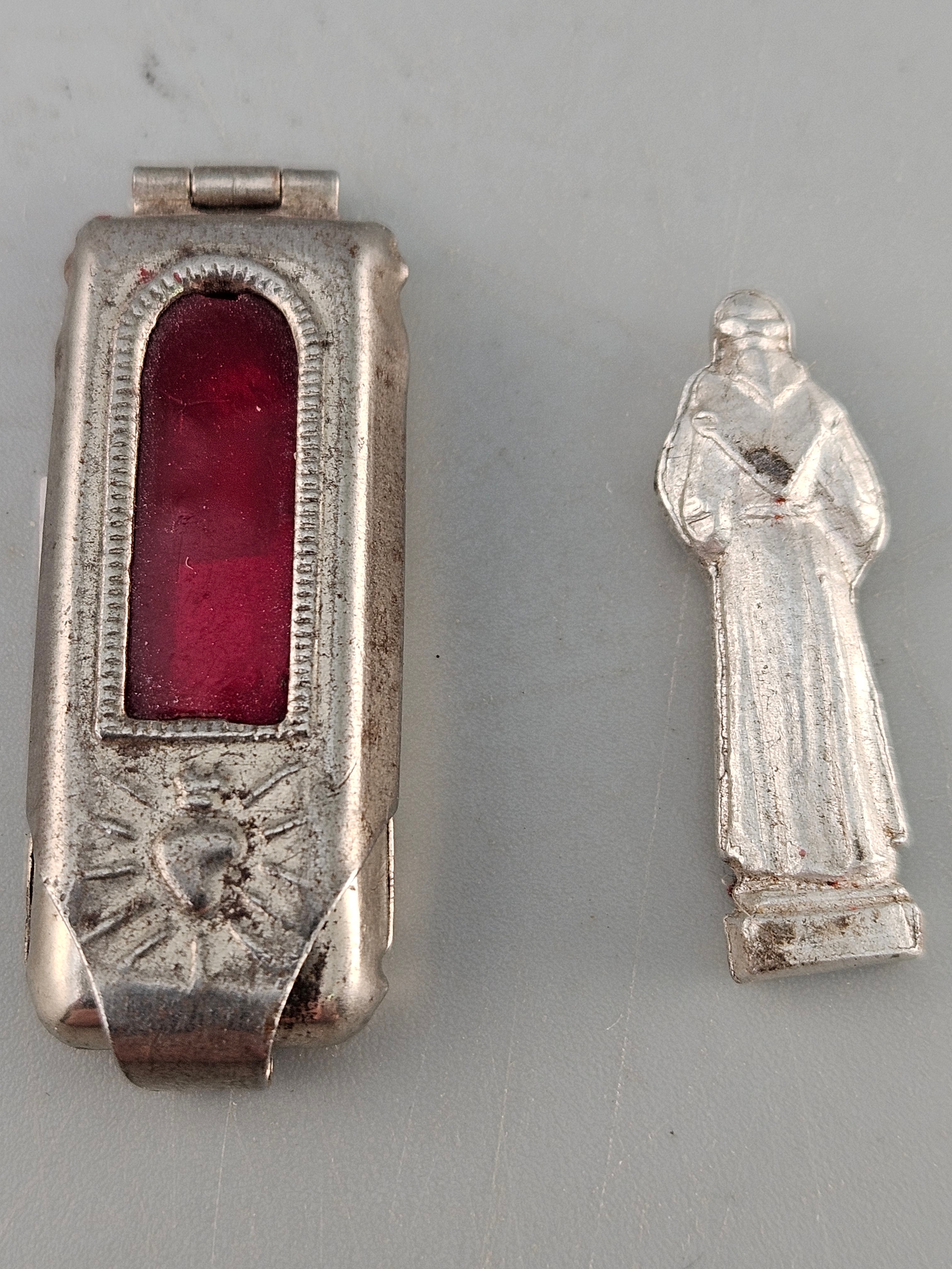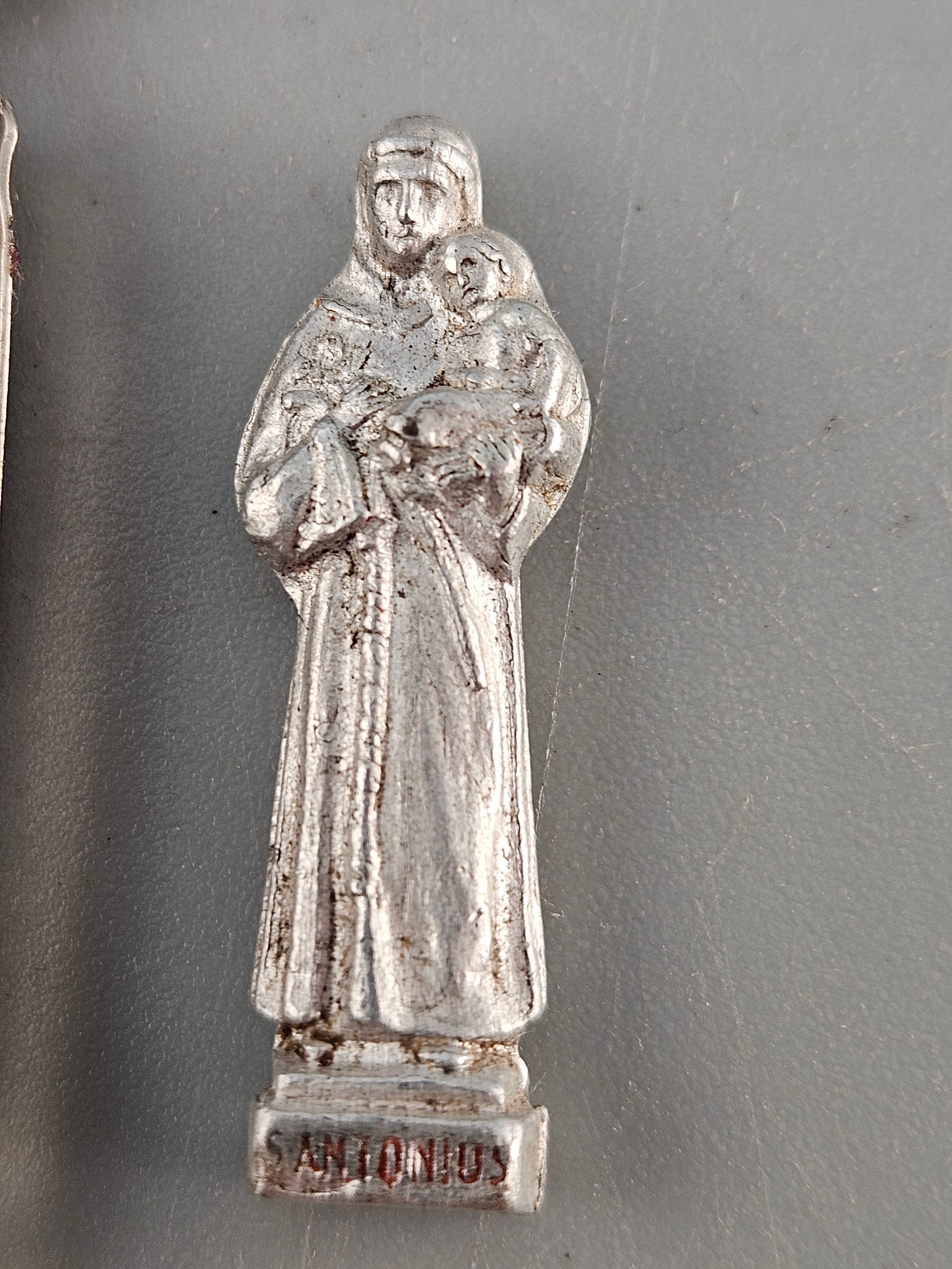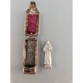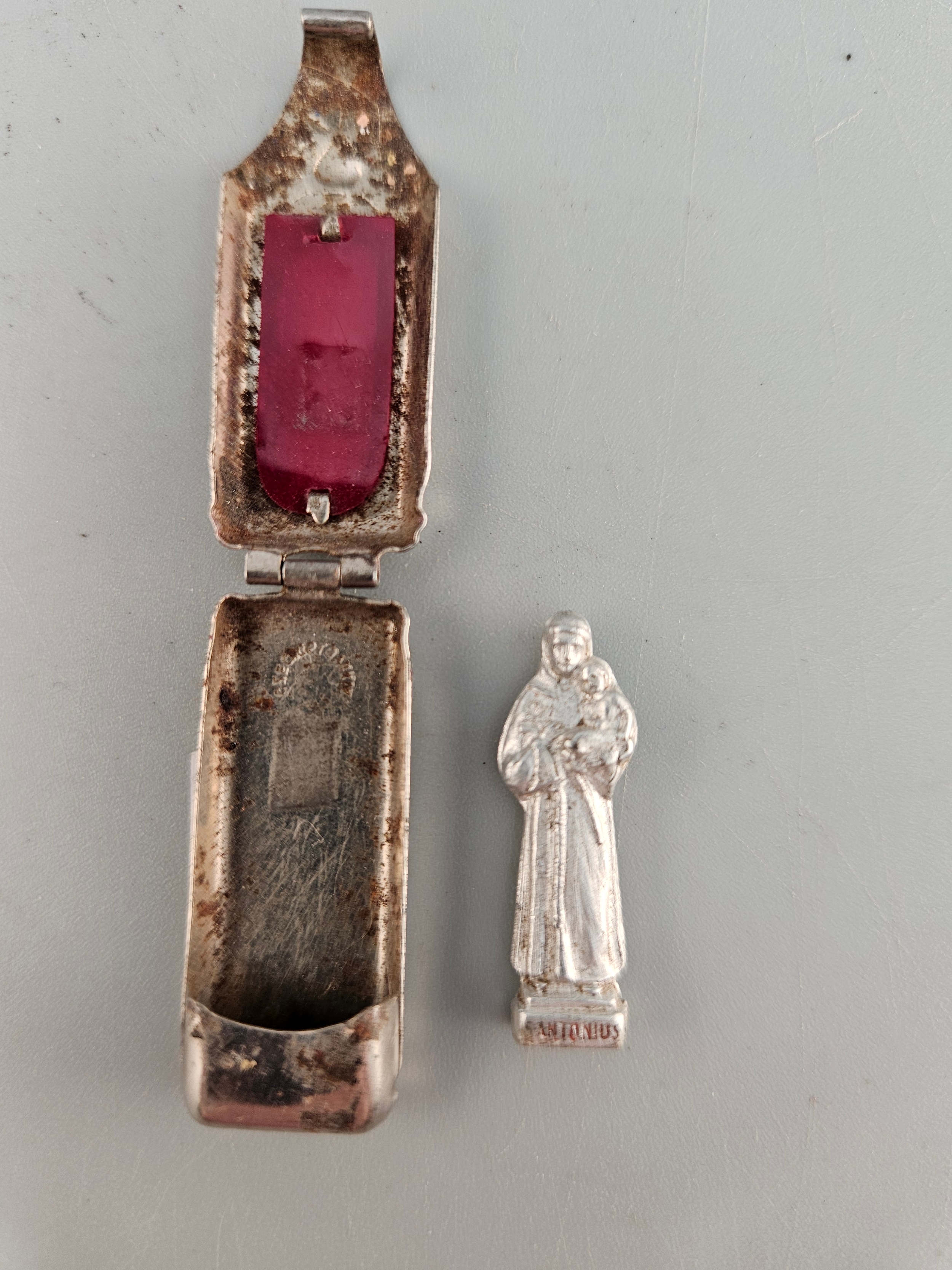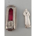 Antique pocket shrine, porta saint, travellers shrine, little statue, miniature silver plated statuette of Holy Virgin Mary and Child Jesus.