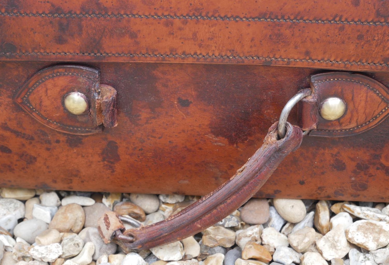 DREW & SONS, LEADENHALL, LONDON, A VINTAGE TAN LEATHER SUITCASE