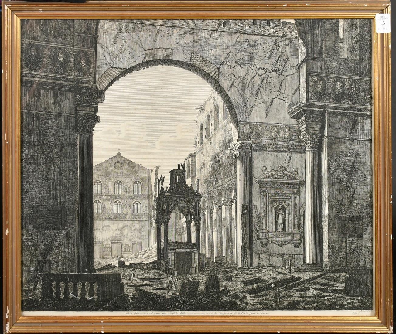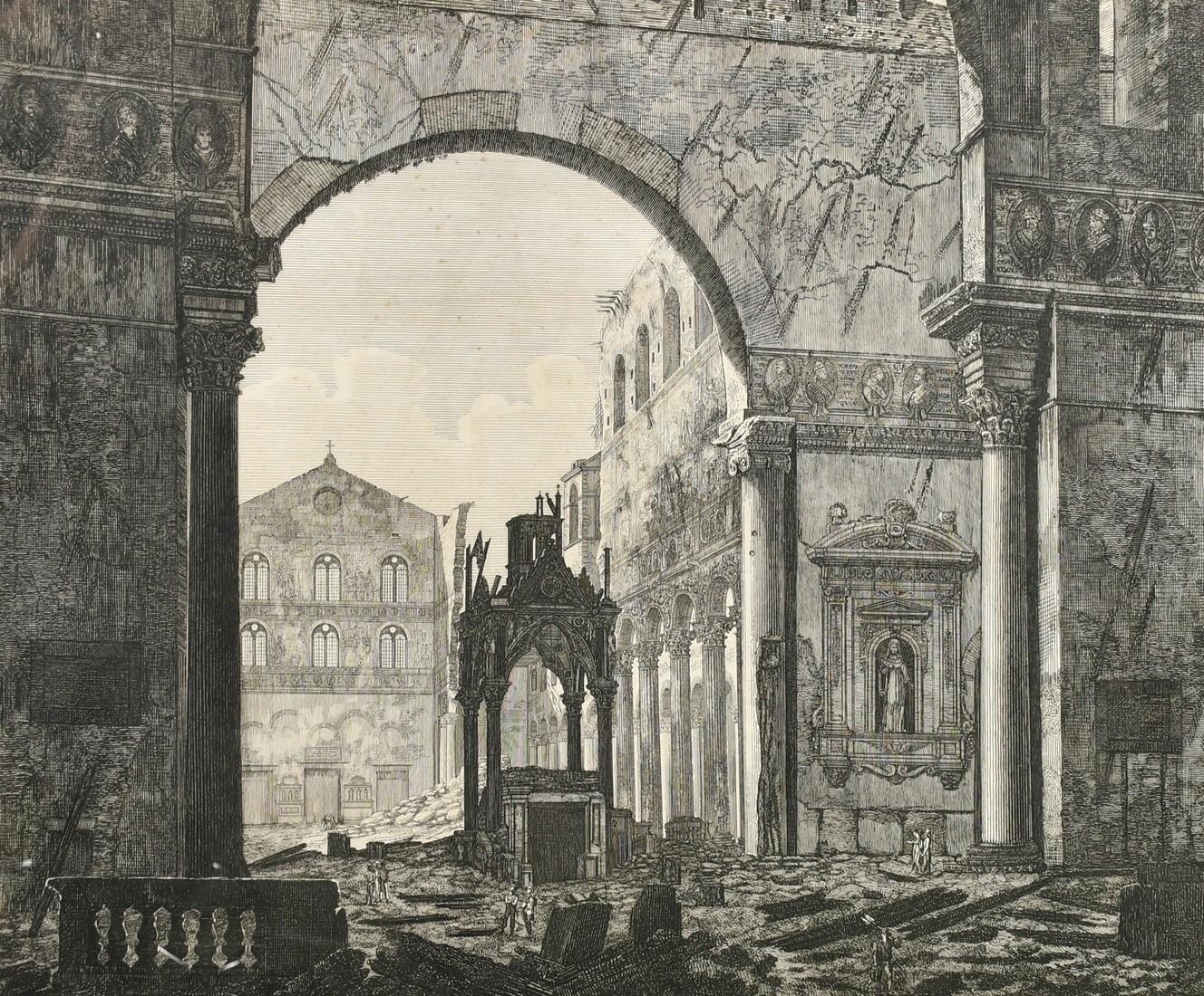 Luigi Rossi, Circa 1823, buildings in Rome, engraving, 19" x 23" (49 x 58cm).