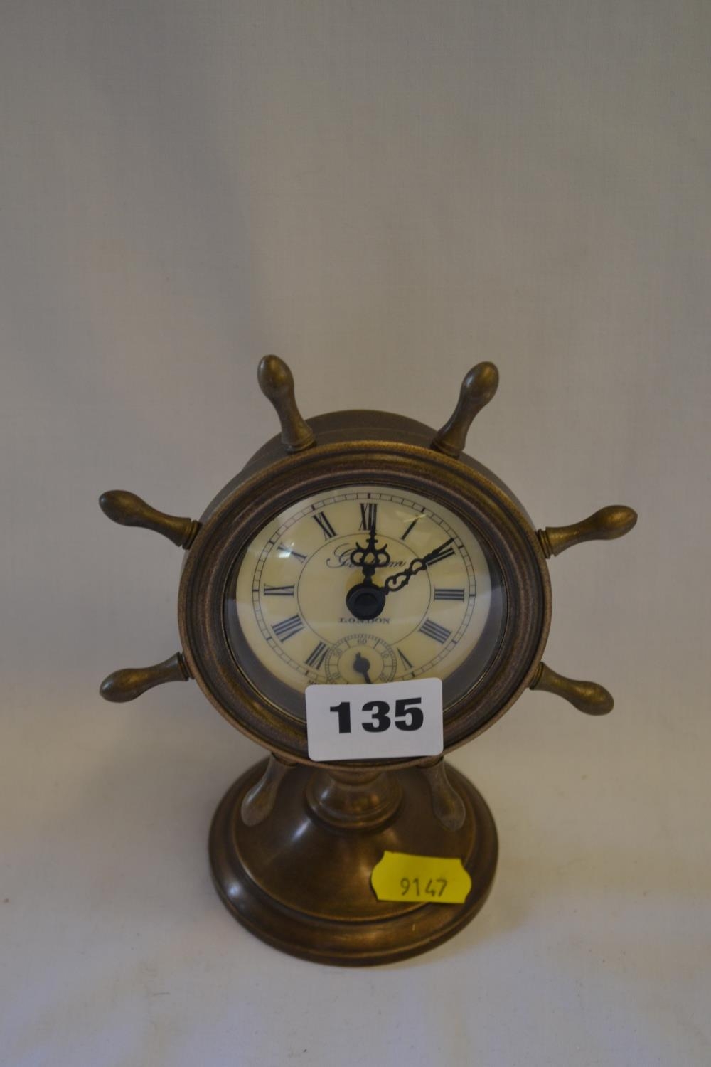 BRASS SHIP'S WHEEL MANTEL CLOCK