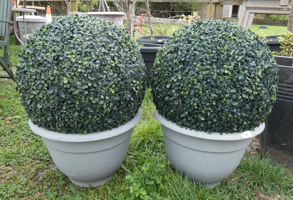 Pair of potted faux bushes