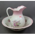 Large James Kent washbowl and jug with pink floral pattern, diameter of bowl 40cm (2).