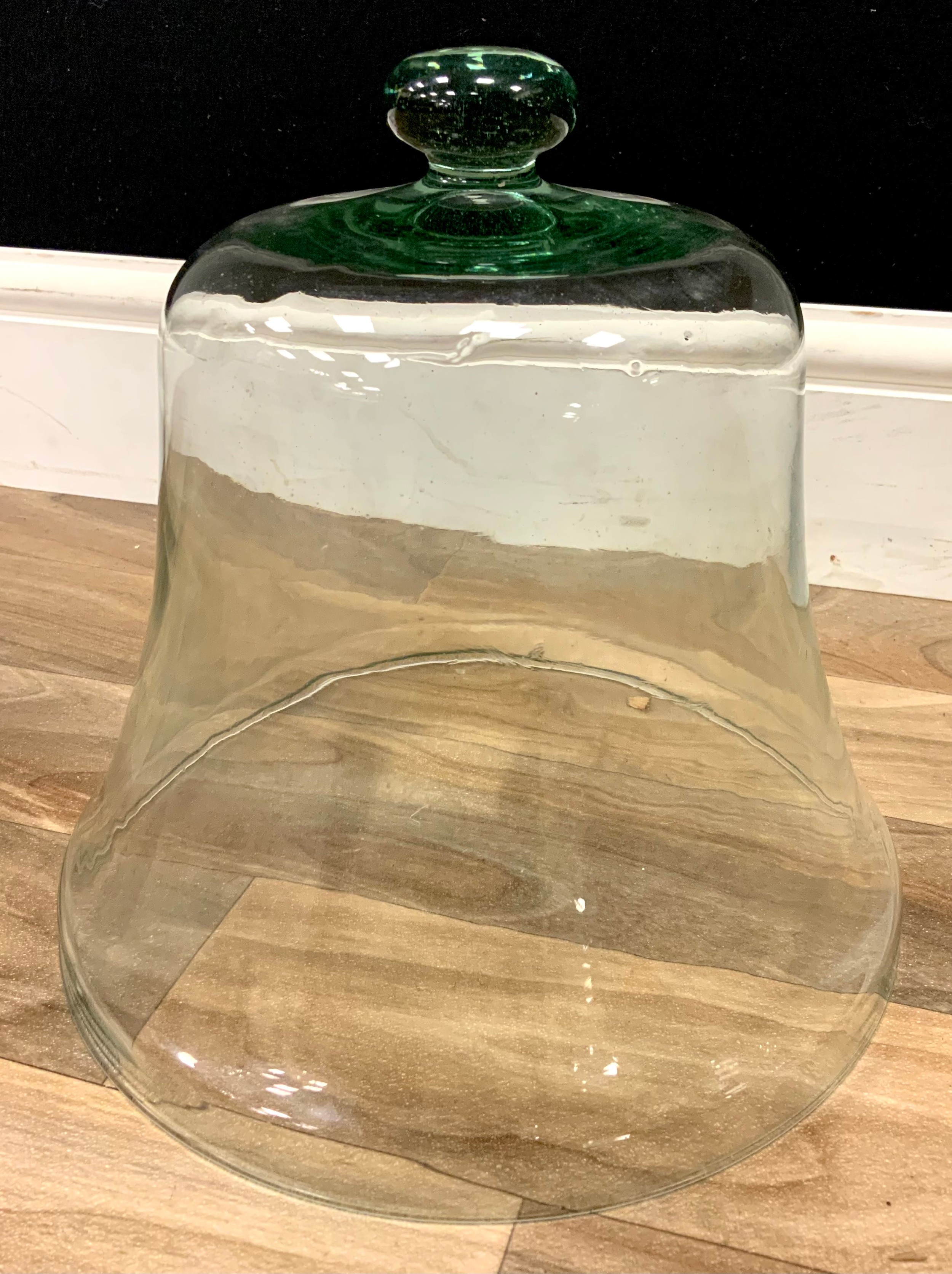 A late 19th century glass Cloche, slight greenish body with bubbled inclusions, 22cm high, 24cm diameter