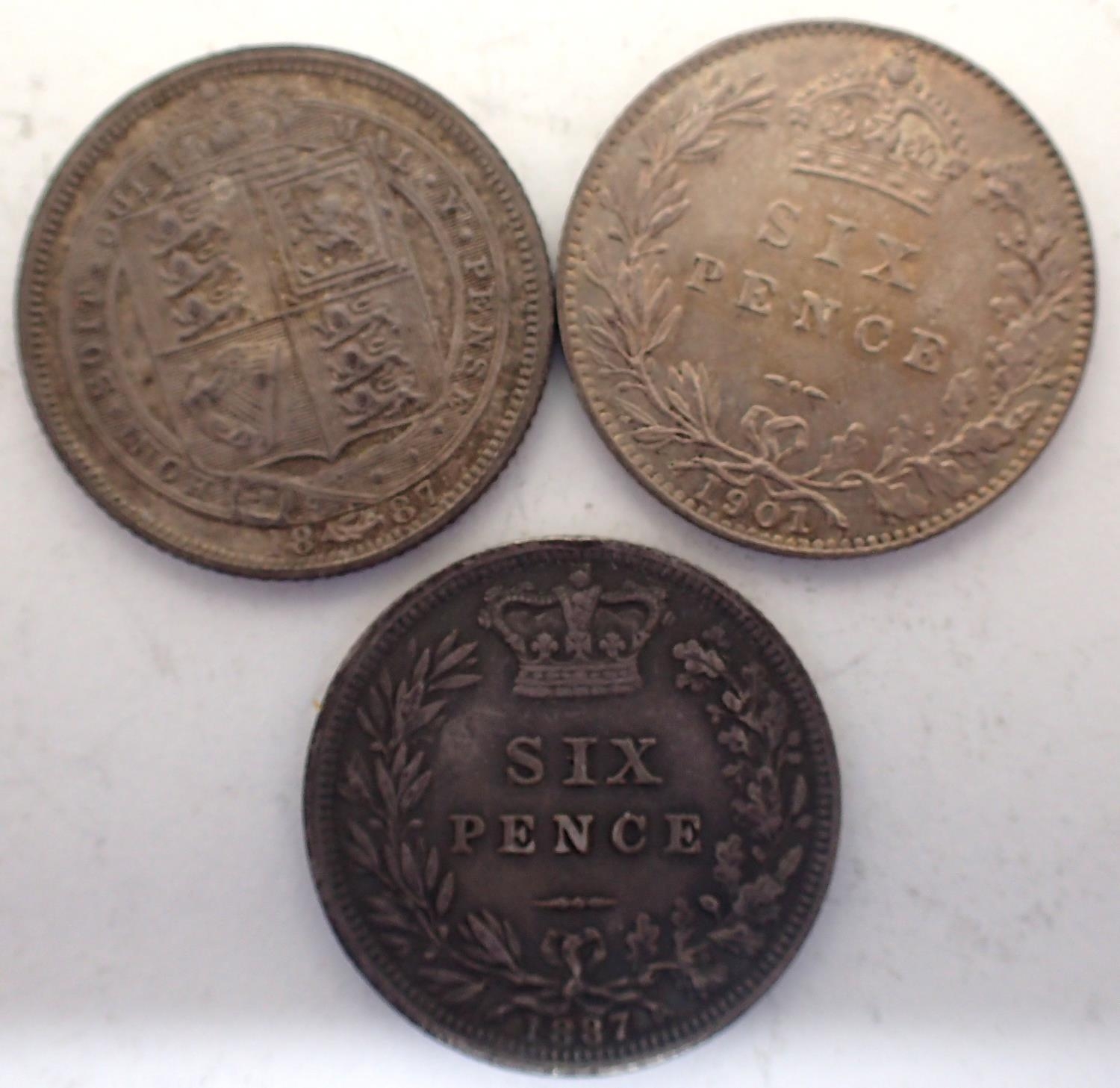 Three sixpences of Queen Victoria, young, Jubilee and widow head. P&P Group 1 (£14+VAT for the first lot and £1+VAT for subsequent lots)