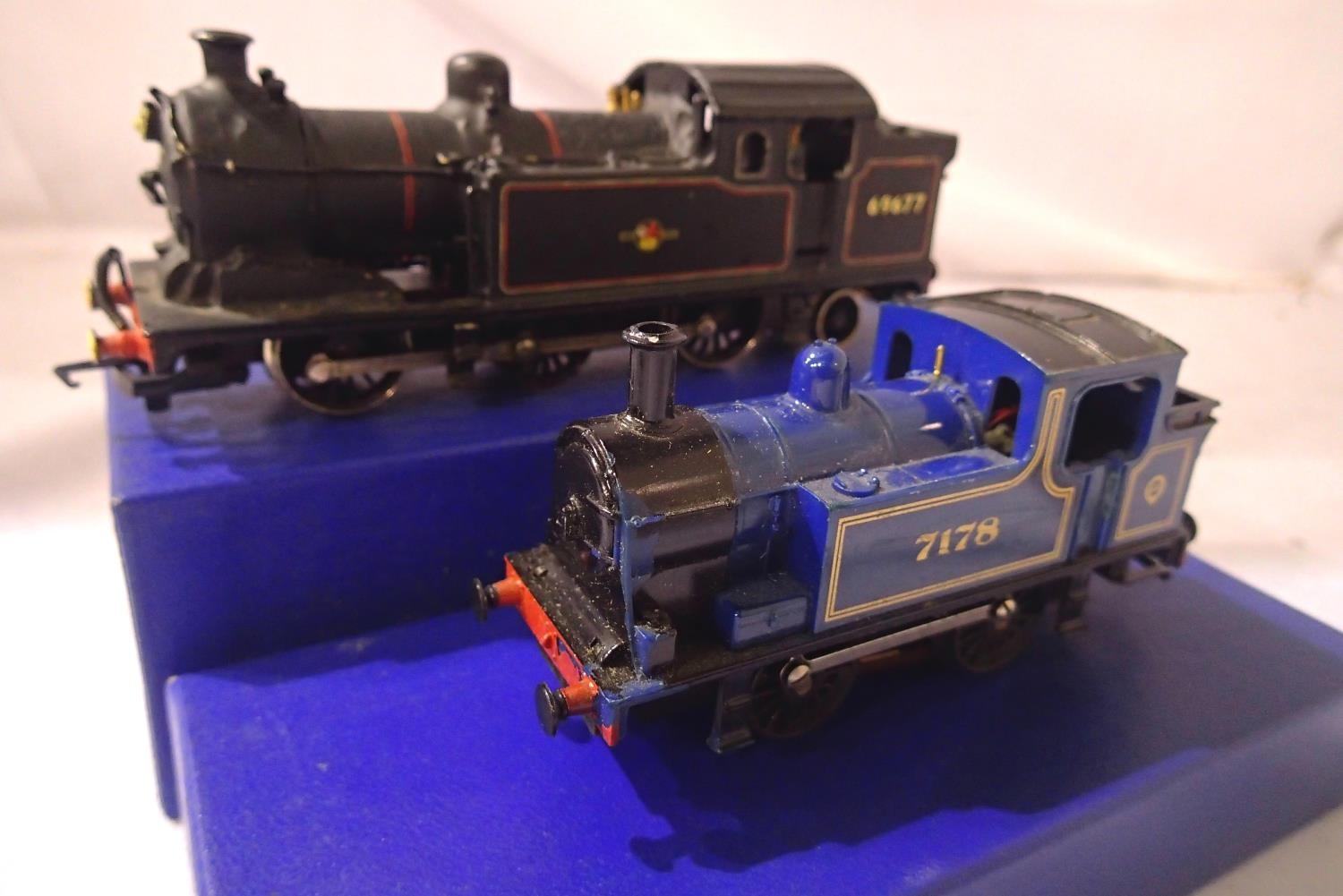 Kit built Class N7, 0.6.2. tank, Hornby chassis, Black, Late Crest, 69677, body loose, in fair condition and Hornby 0.4.0.T 7178 Blue. P&P Group 1 (£14+VAT for the first lot and £1+VAT for subsequent lots)