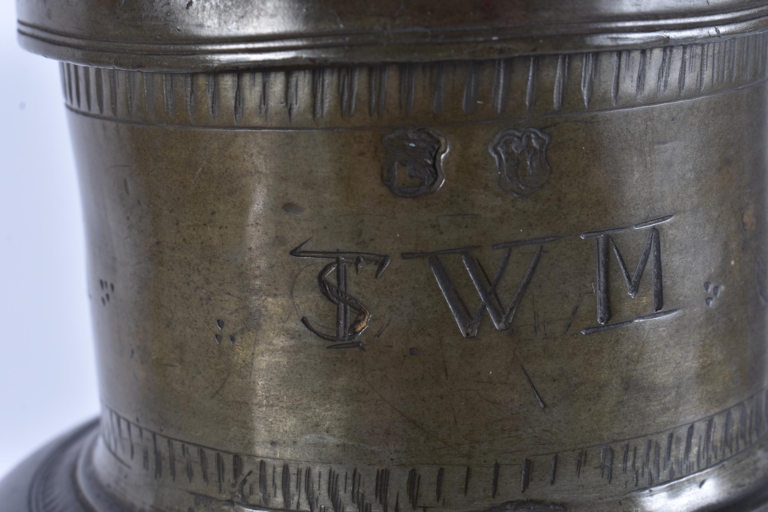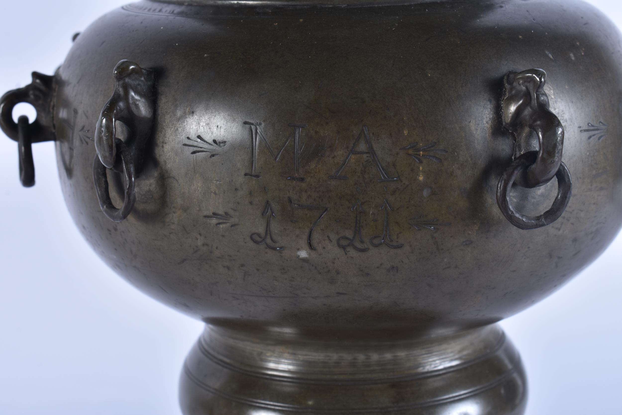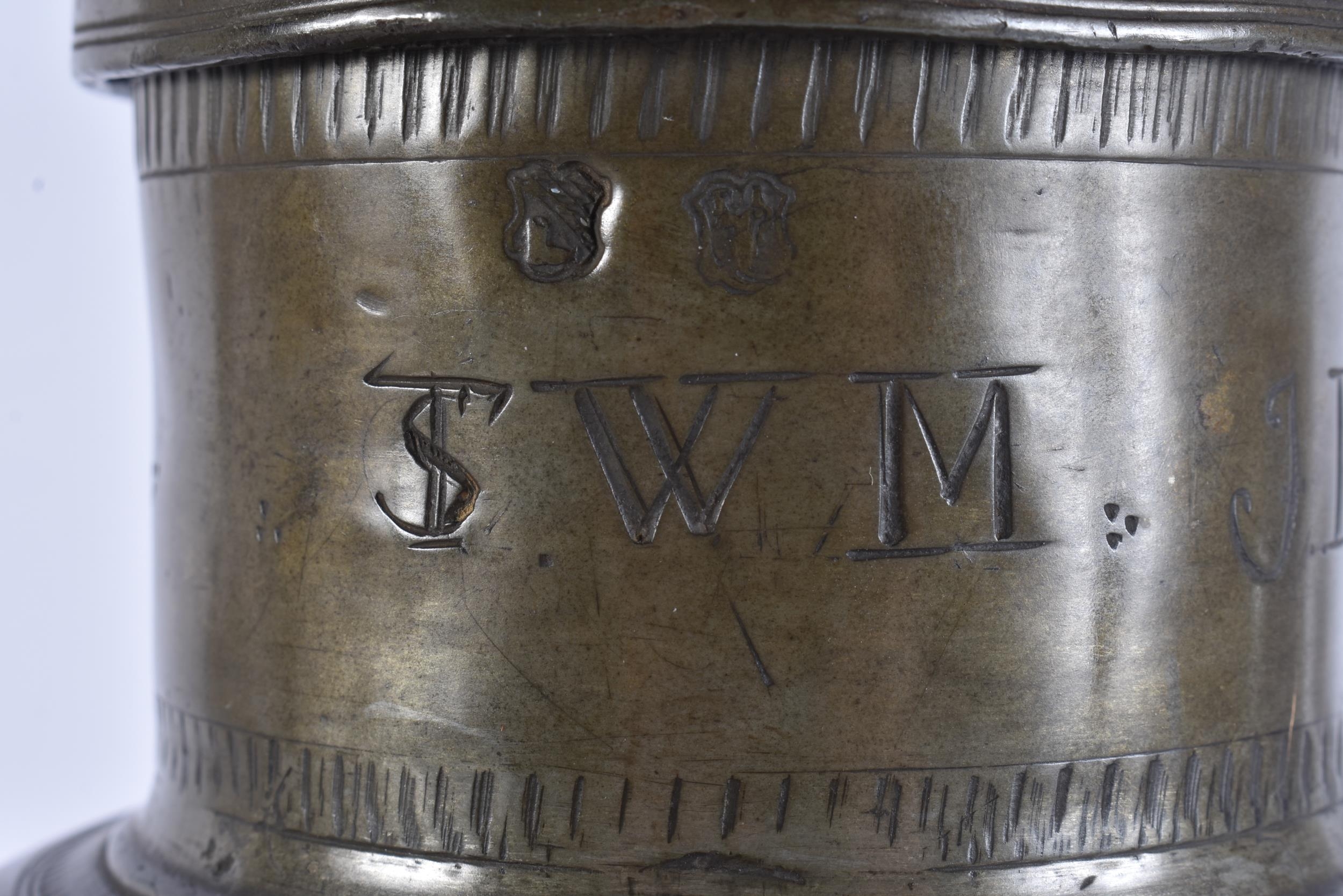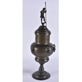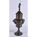 AN UNUSUAL EARLY 18TH CENTURY EUROPEAN PEWTER GUILD VASE AND COVER C1711. 47 cm high.