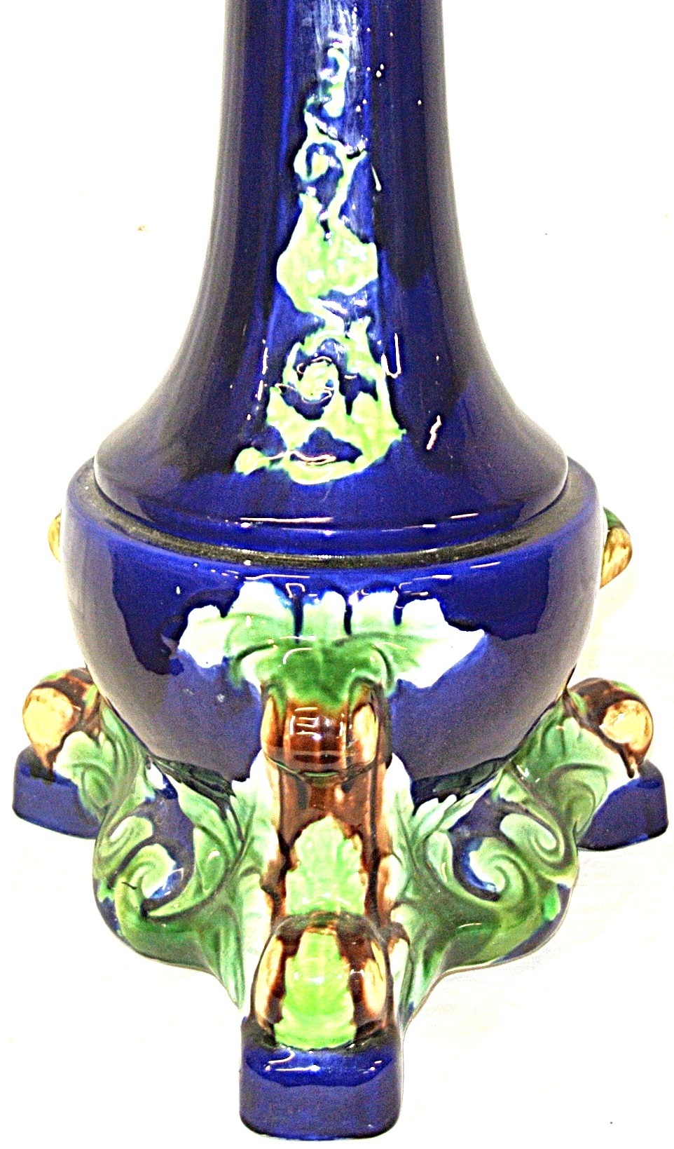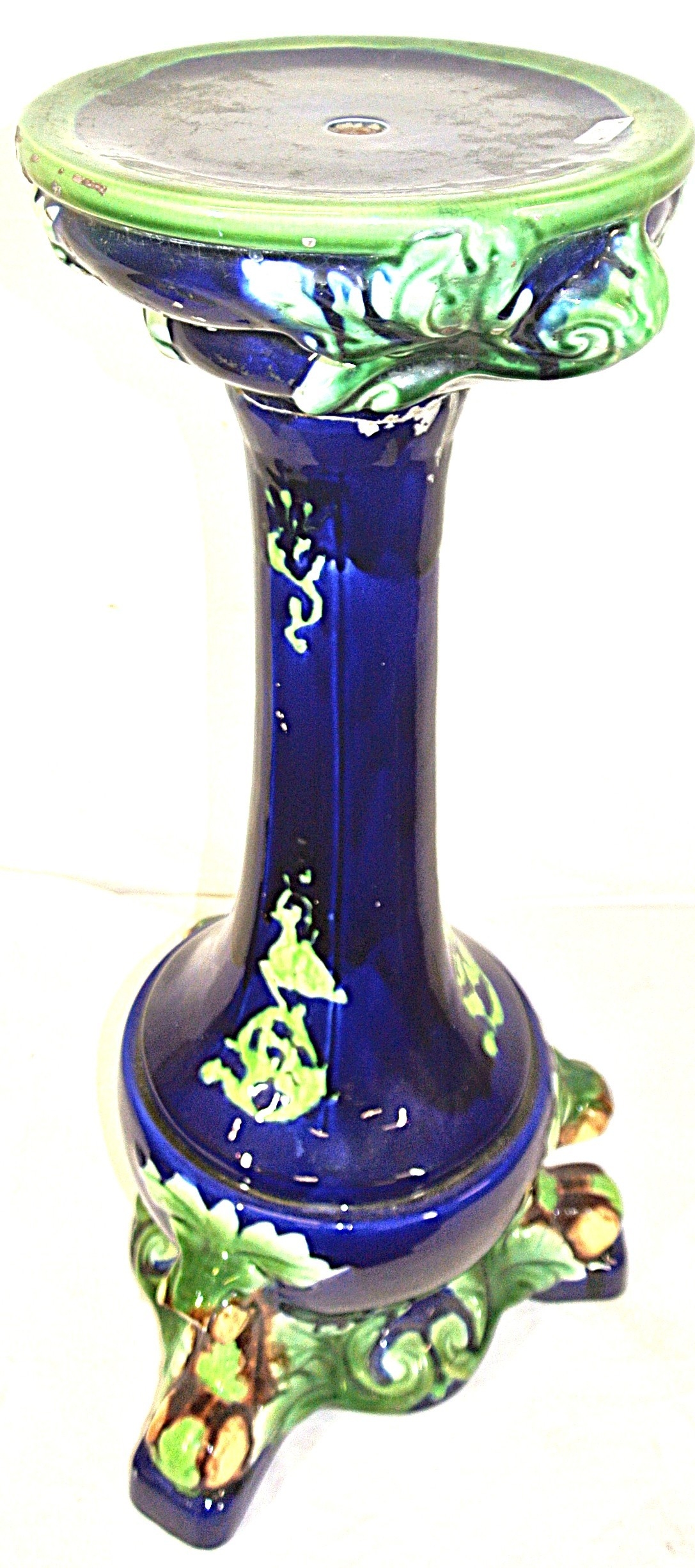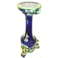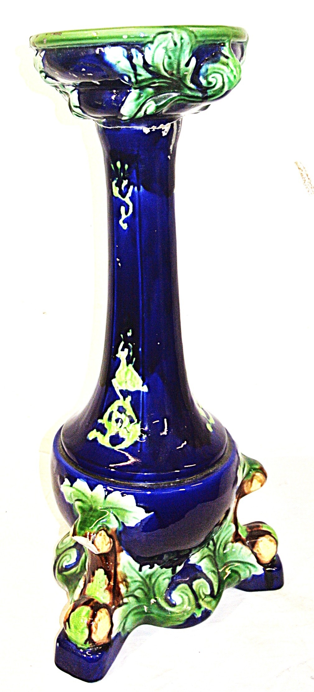 Majolica style porcelain jardiniere stand with foliate decoration and shaped base