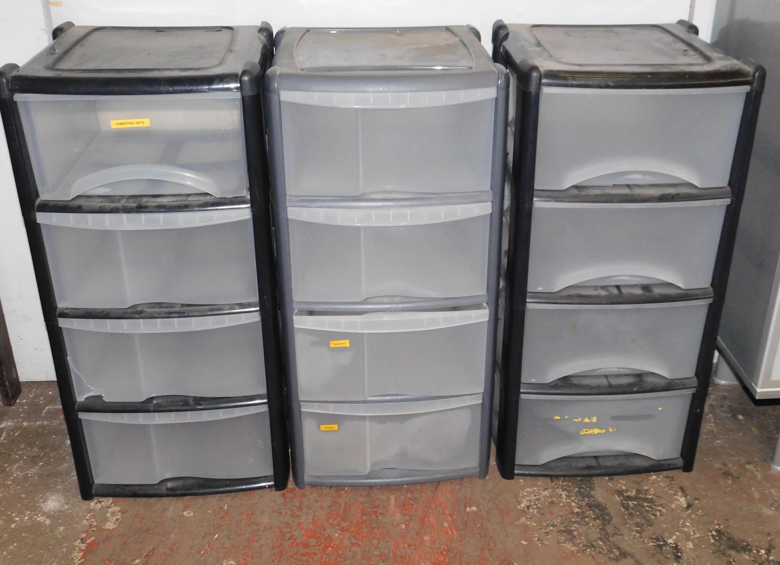 3x Four drawer plastic units