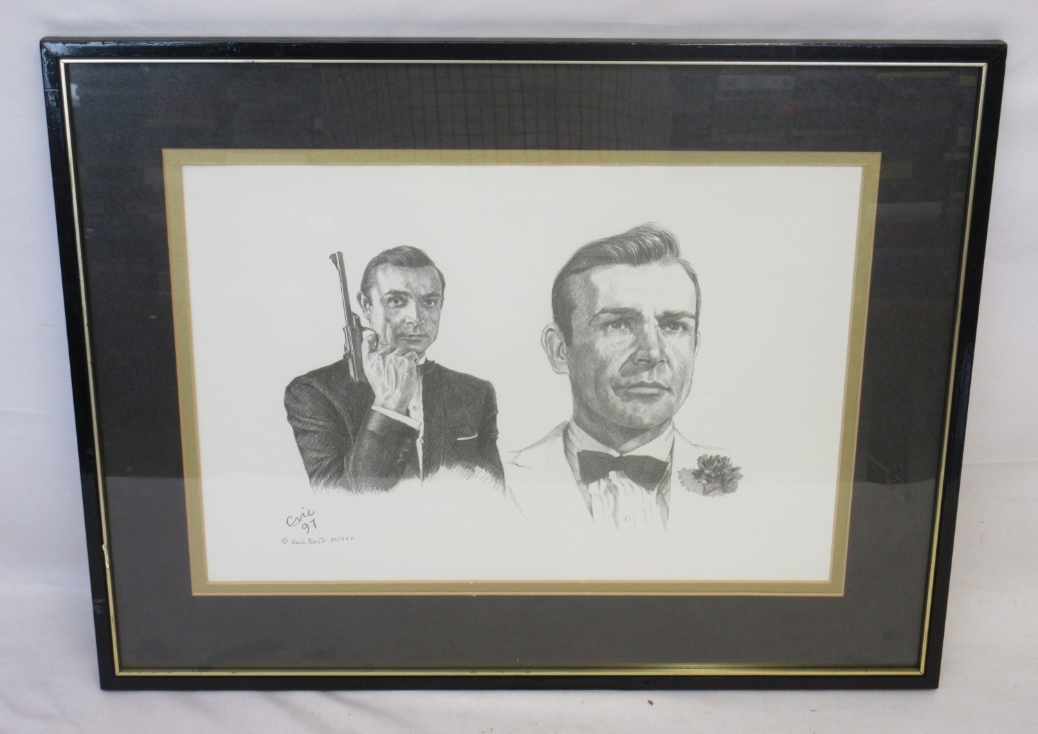 The Ricky Groves Collection - framed Eric Bond limited edition print of Sean Connery as James Bond, 35/500, 55.3cm x 42.8cm