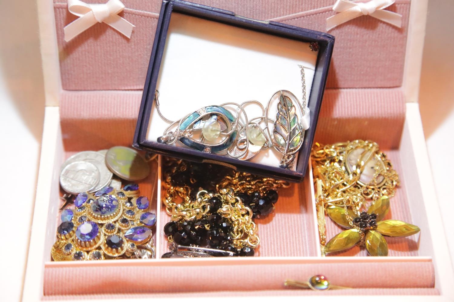 Box of costume jewellery including New Zealand items. P&P Group 1 (£14+VAT for the first lot and £1+VAT for subsequent lots)