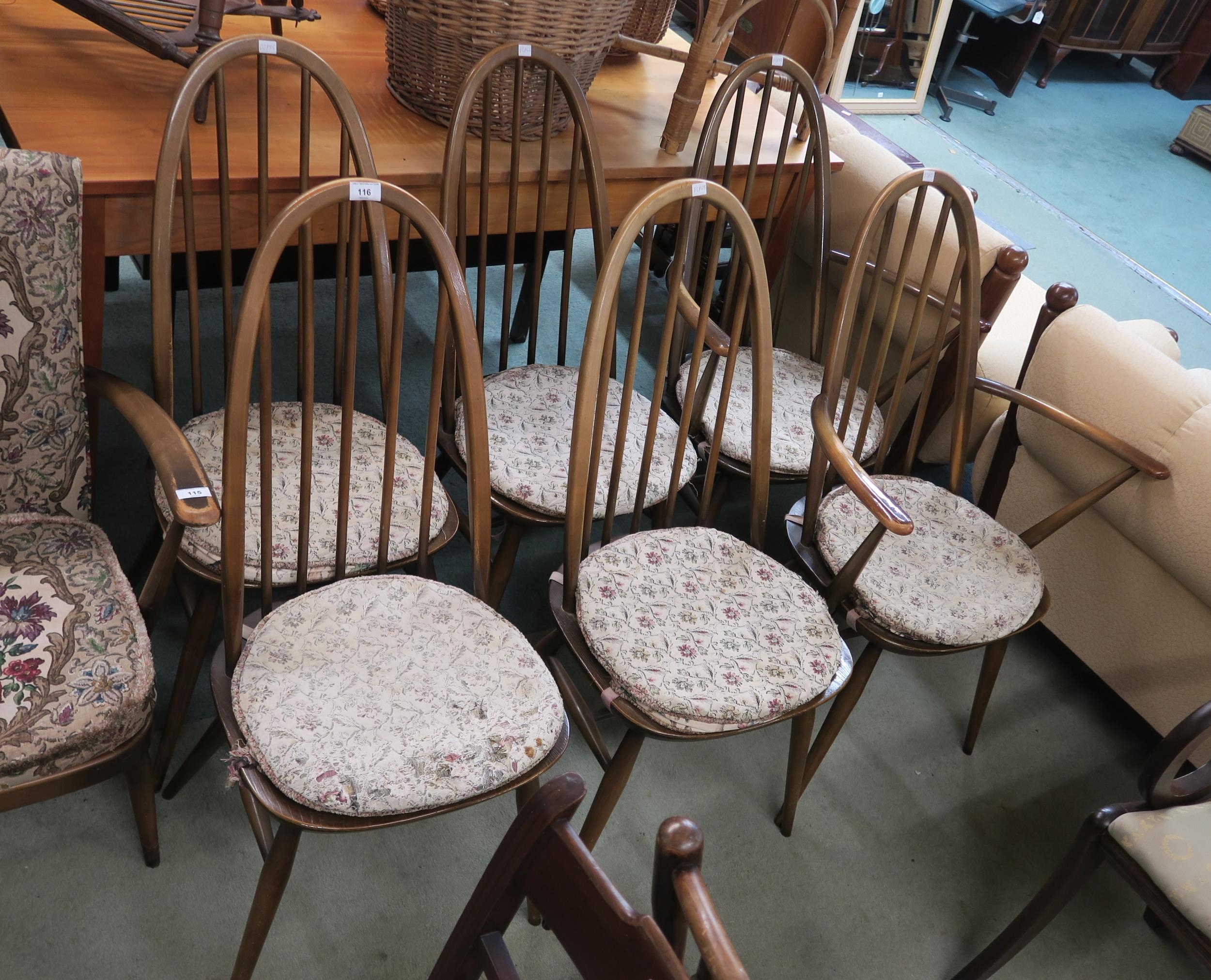 Chairs are in a condition consummate with age and use with wear to tops of chairs and arms