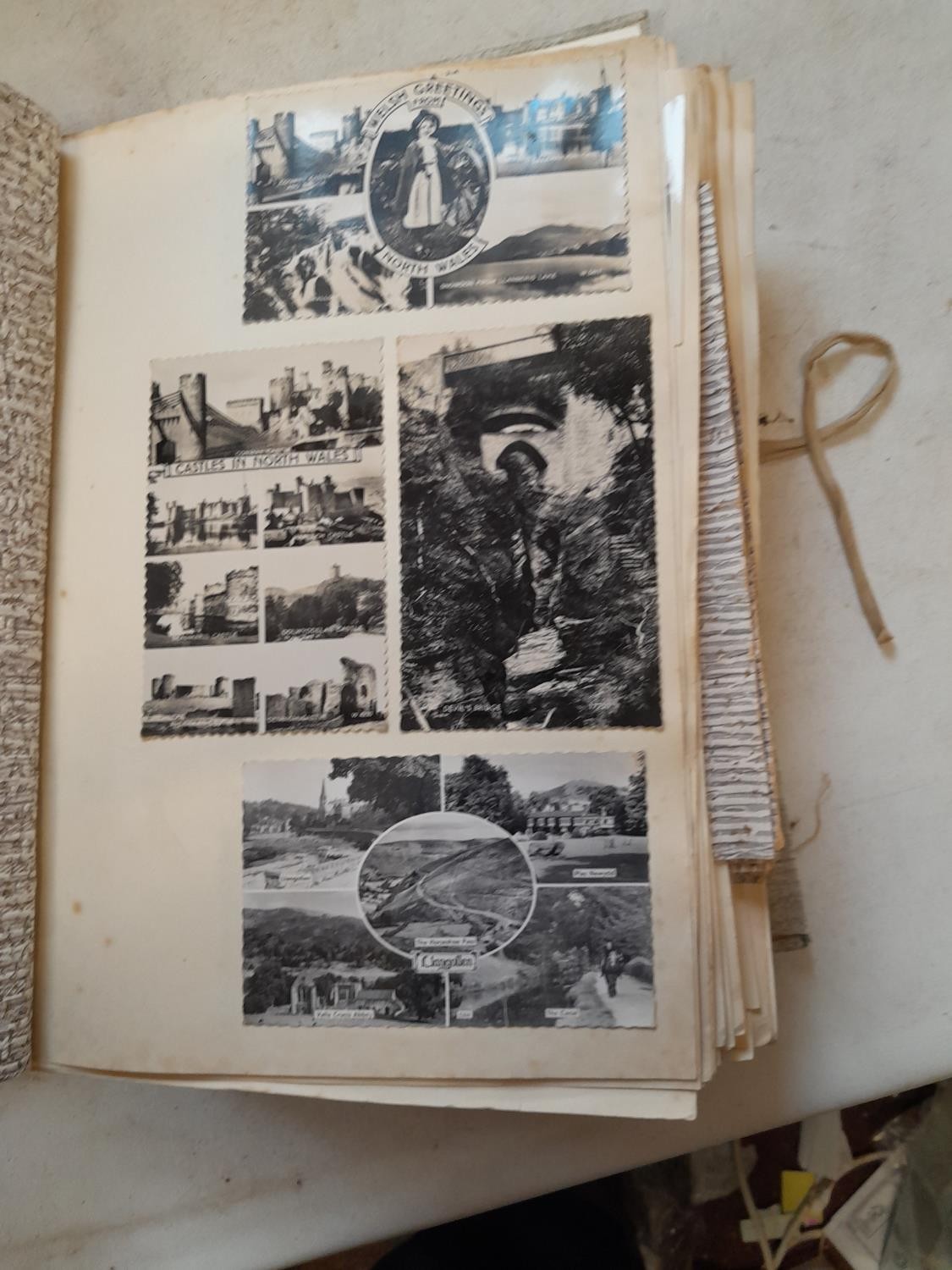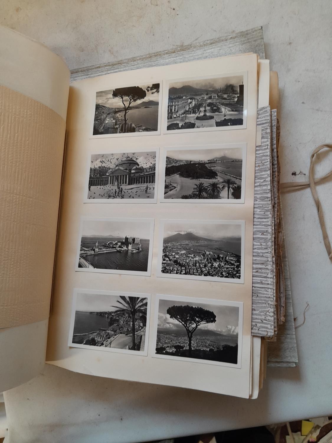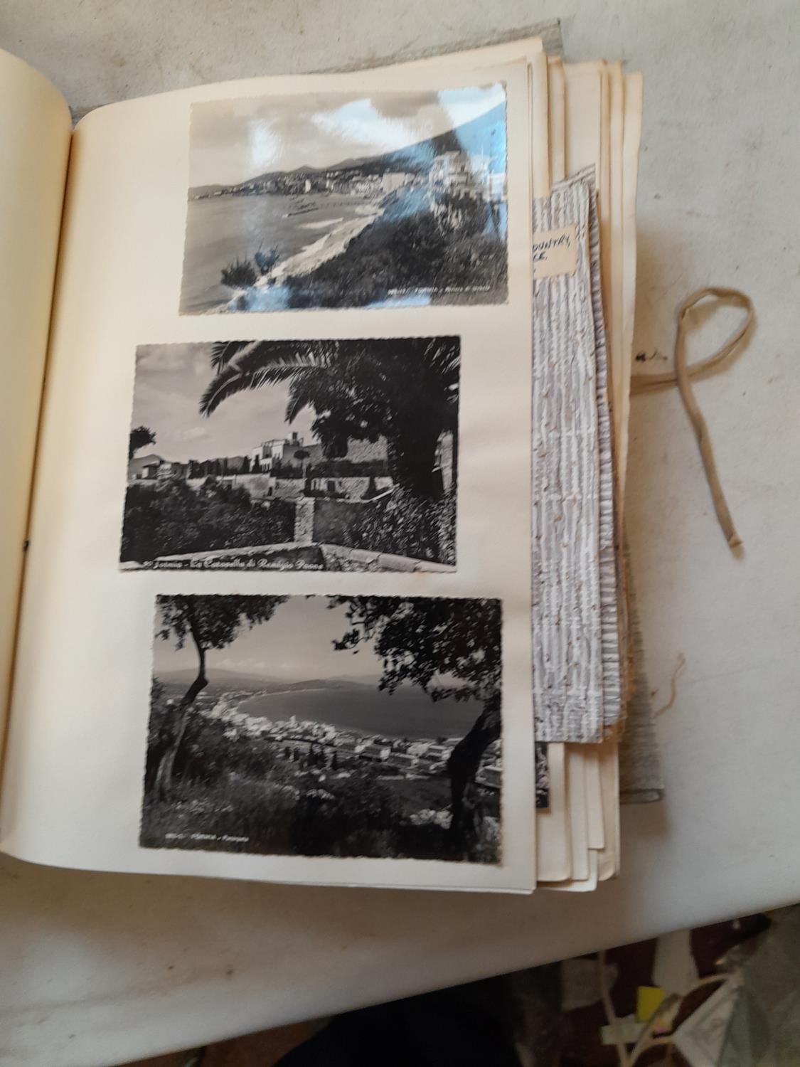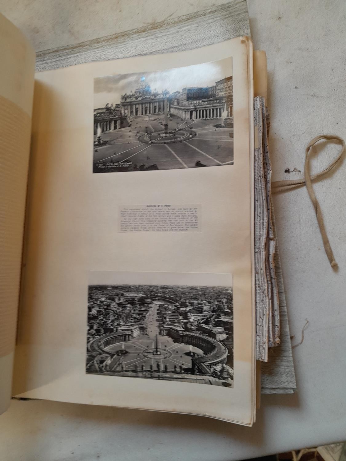 An album full; of black and white postcards and photographs , tourist destinations and other interest world wide