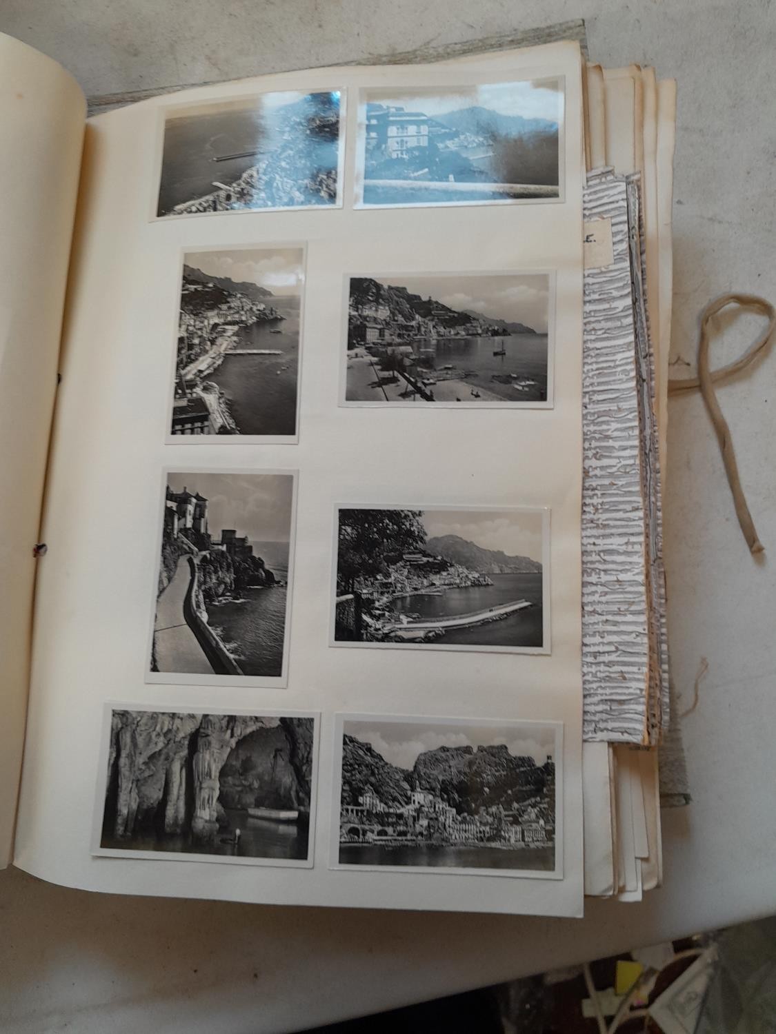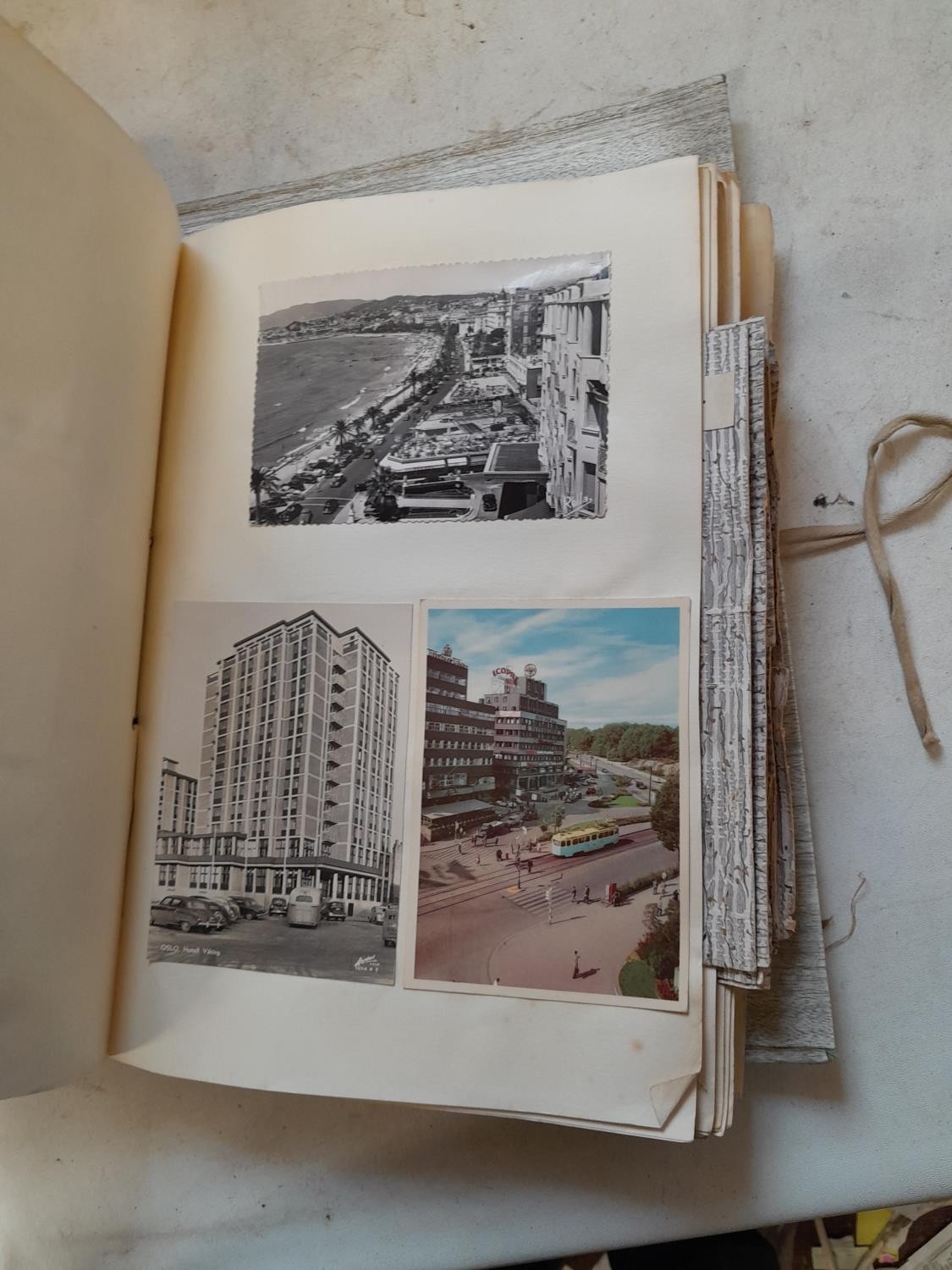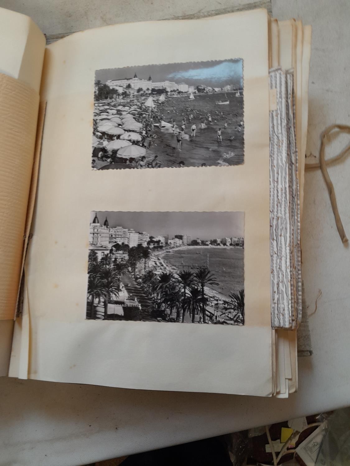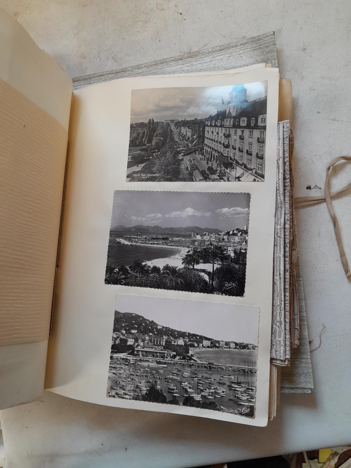 An album full; of black and white postcards and photographs , tourist destinations and other interest world wide