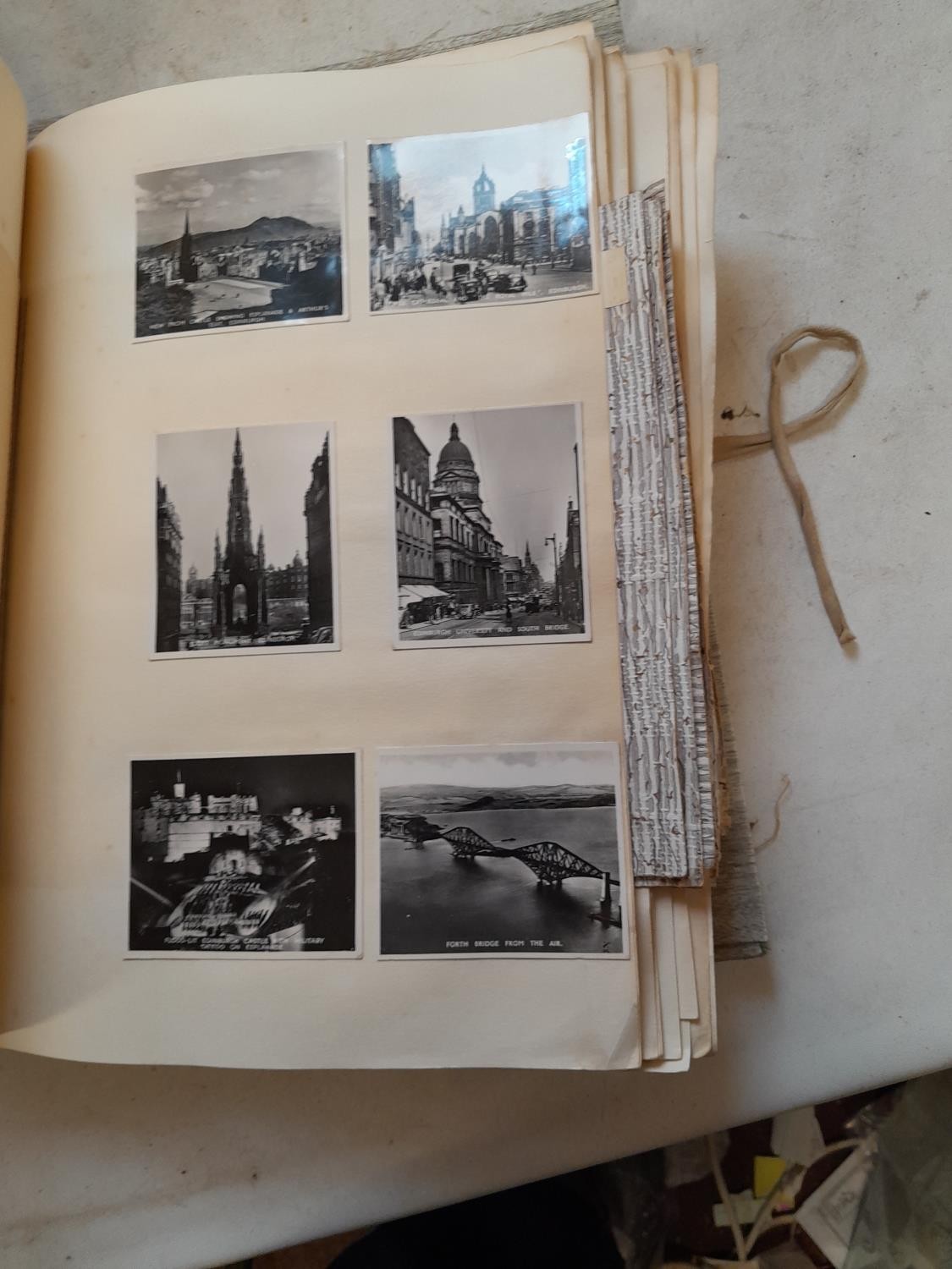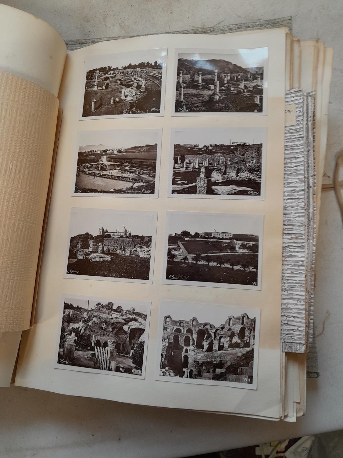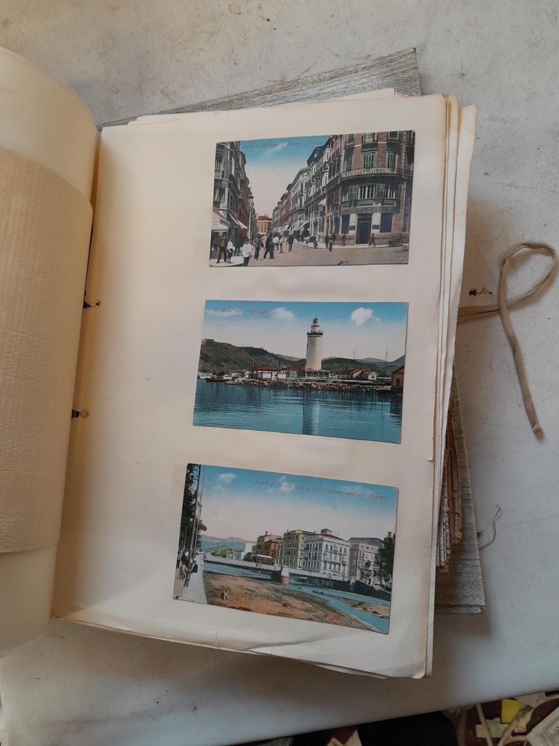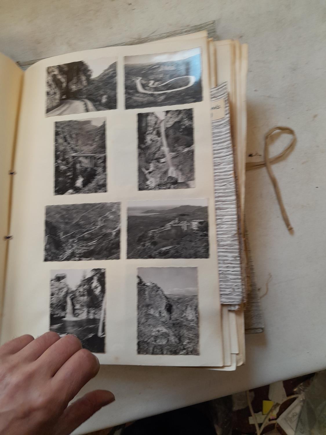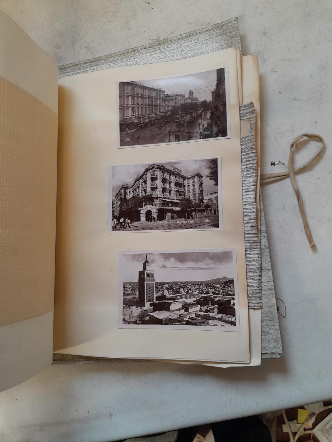 An album full; of black and white postcards and photographs , tourist destinations and other interest world wide