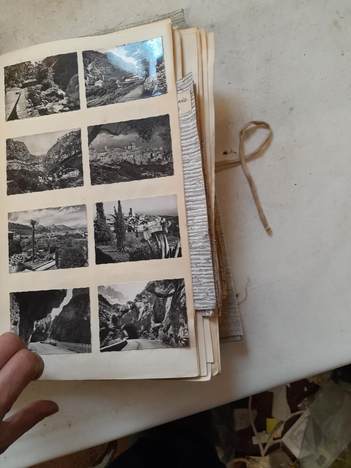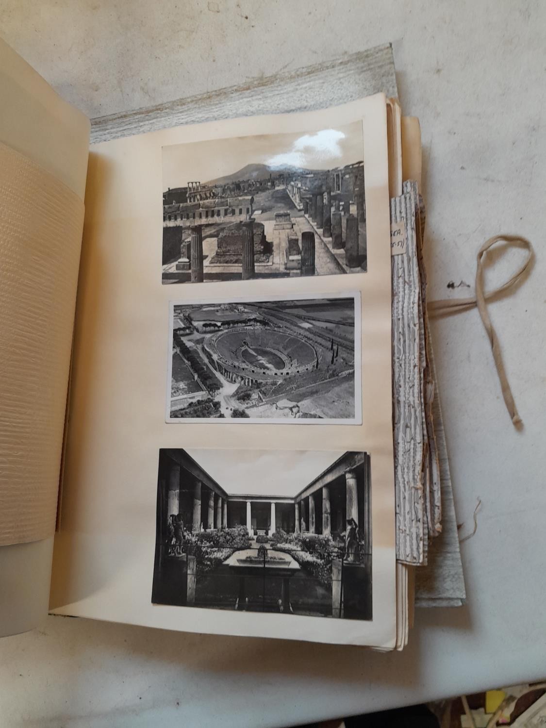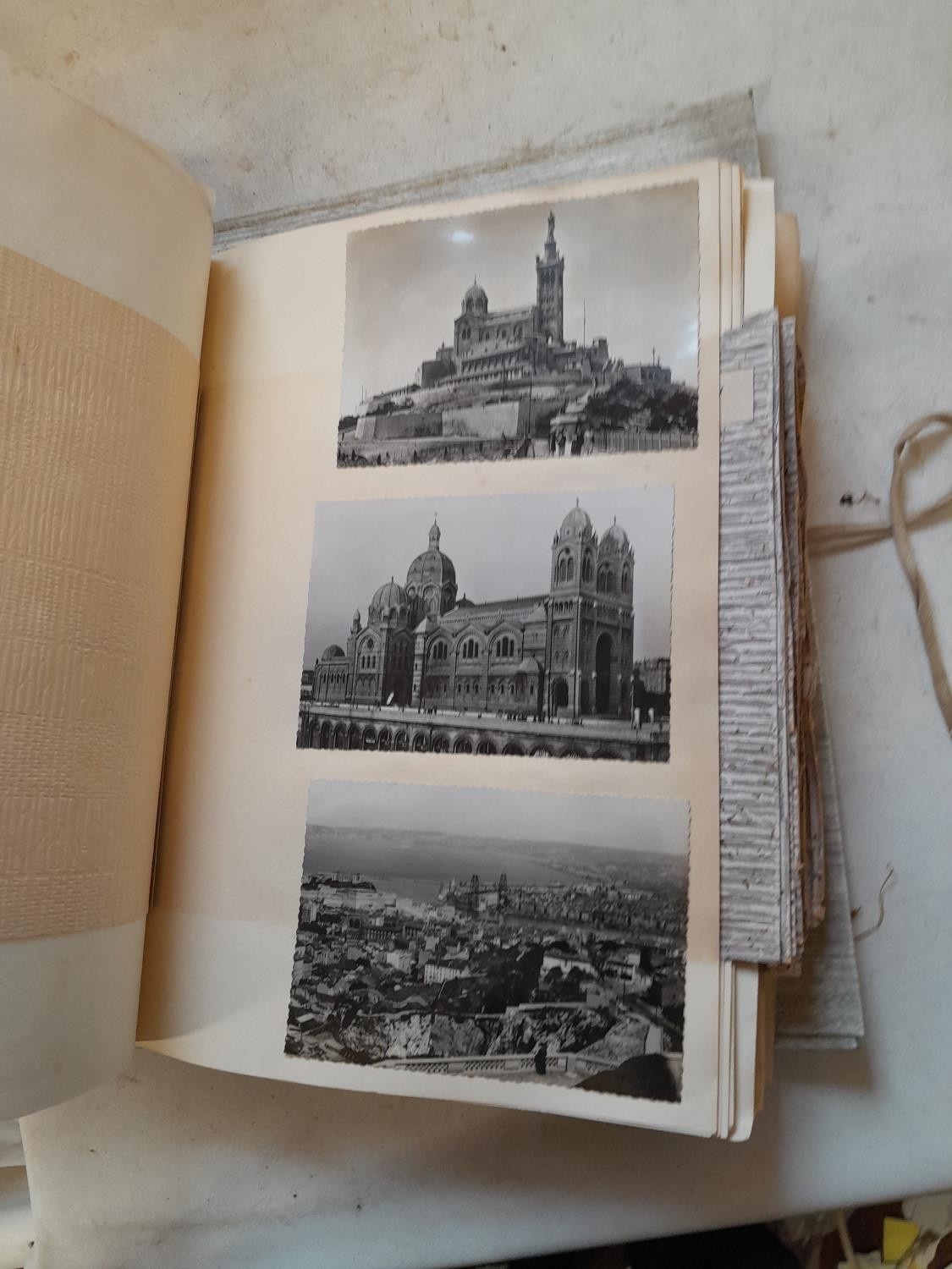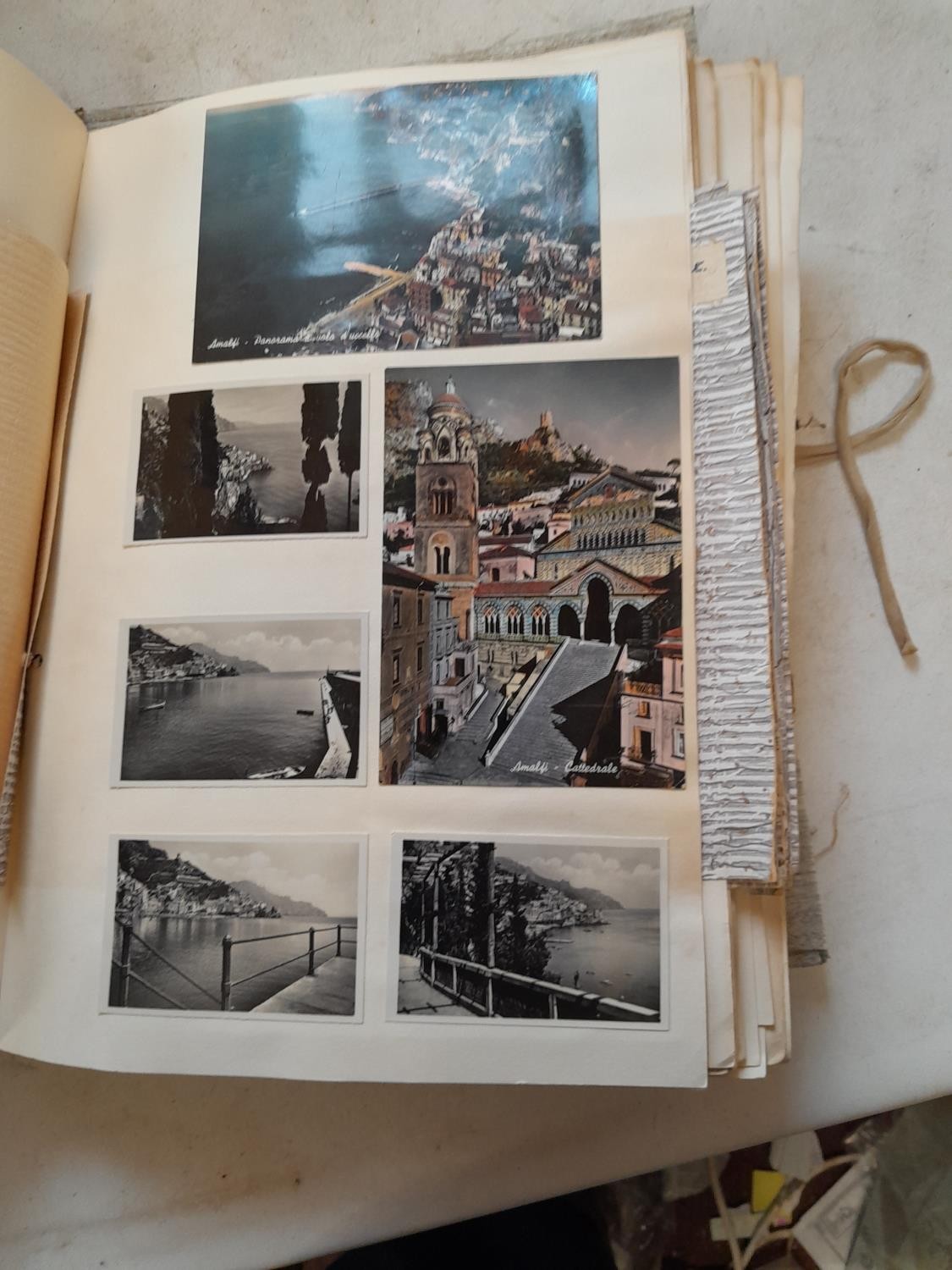 An album full; of black and white postcards and photographs , tourist destinations and other interest world wide