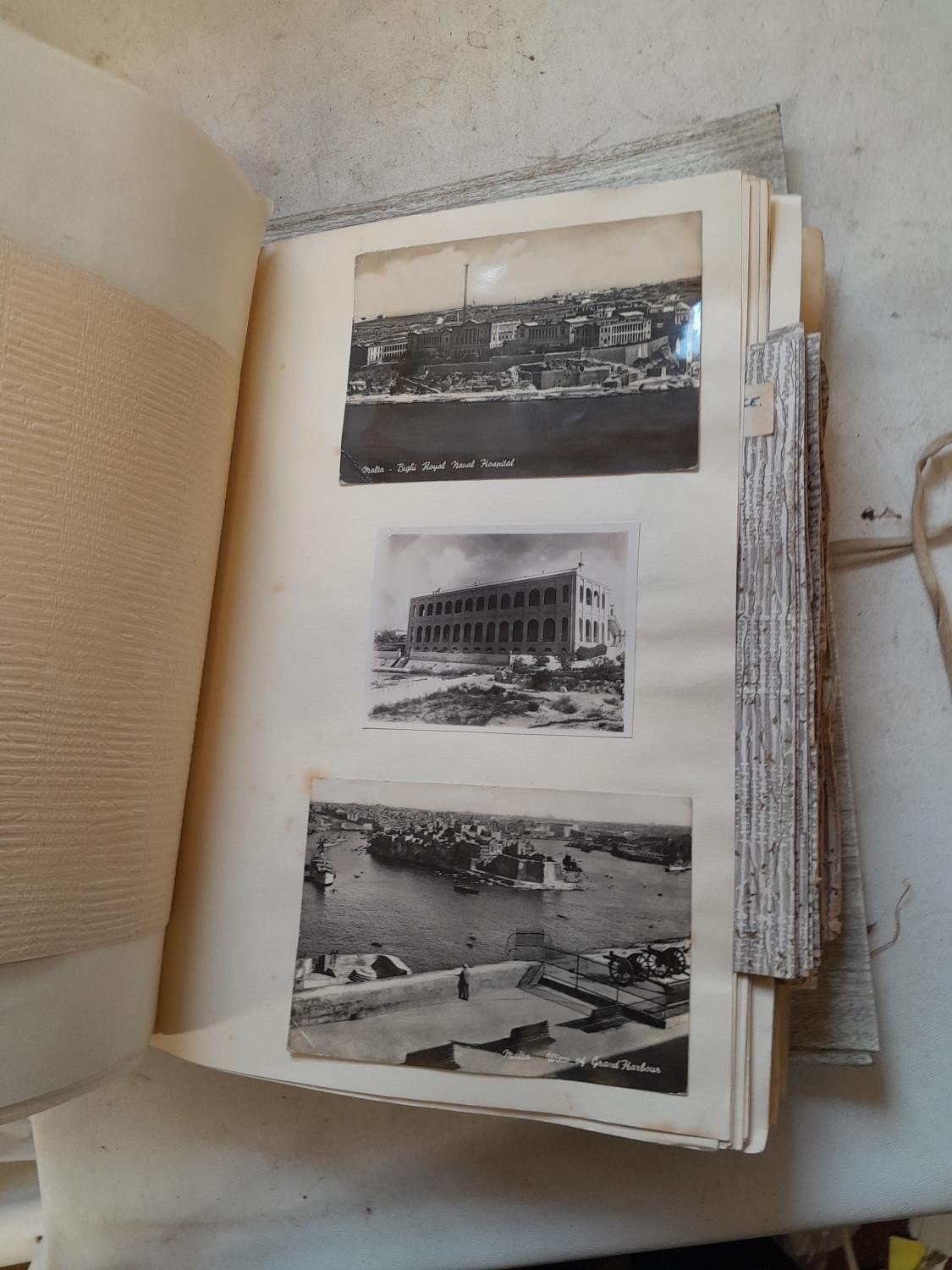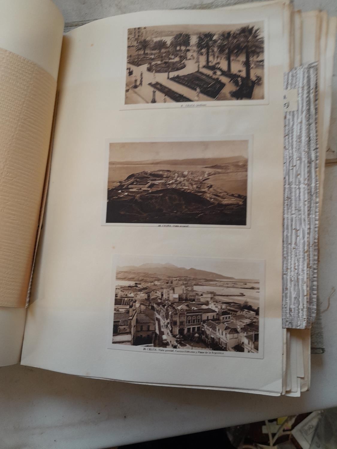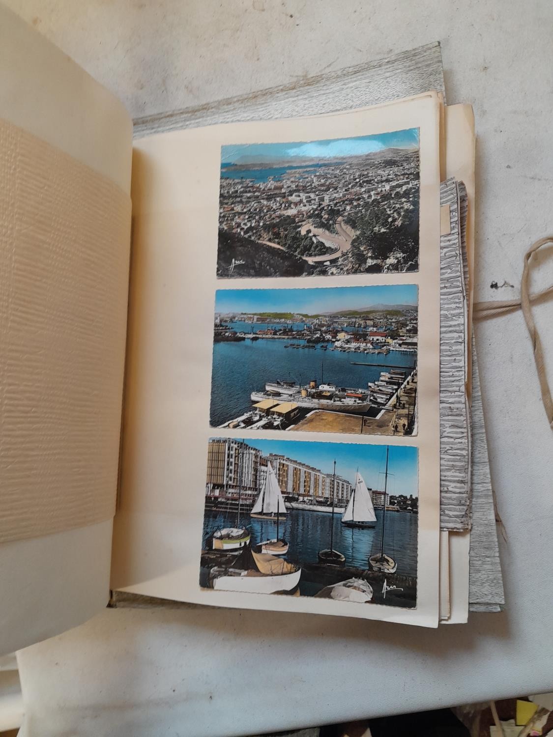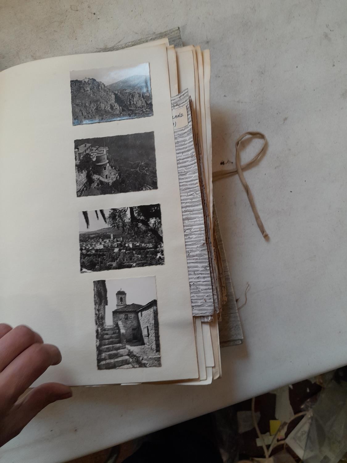 An album full; of black and white postcards and photographs , tourist destinations and other interest world wide