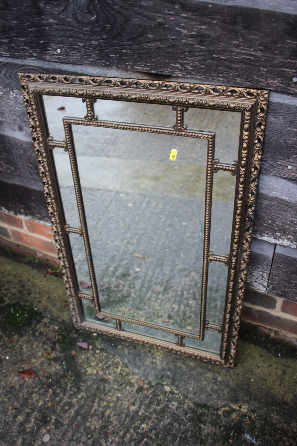 A gilt frame wall mirror with "sectional" style plate, 32" x 20 1/2" overall