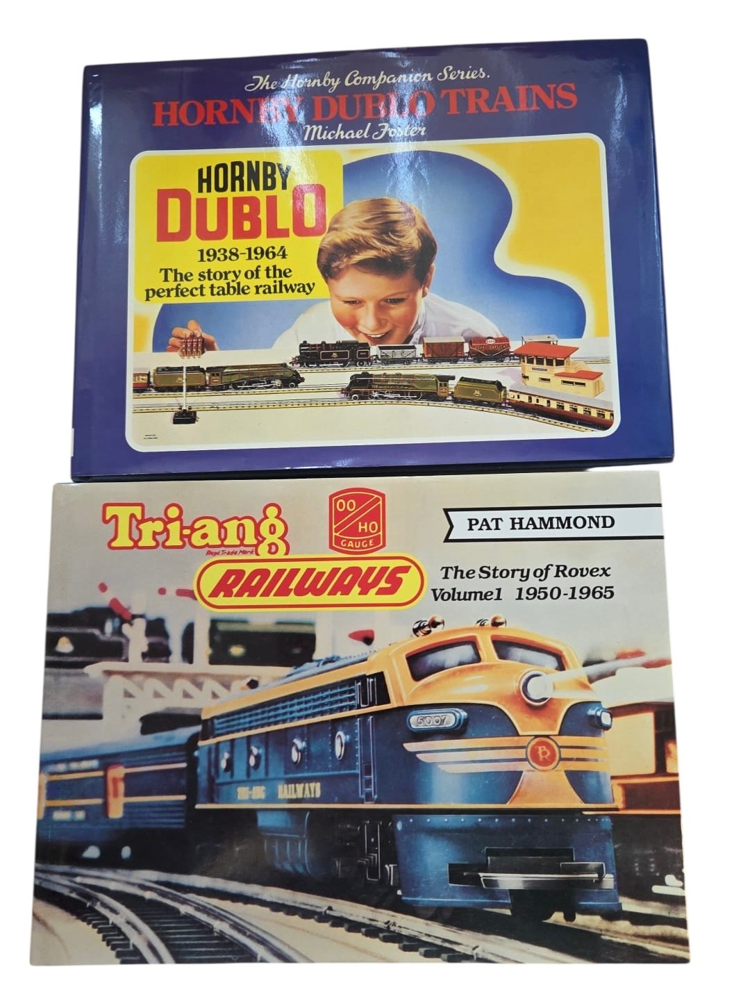 A group of illustrated reference books on model railways, including Michael Foster's Hornby Dublo Trains: 1938-1964 (Hornby Companion Series) and Pat Hammond's Tri-ang Railways: The Story of Rovex, Volume 1, 1950-1965.