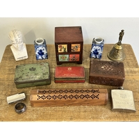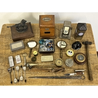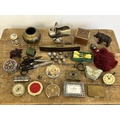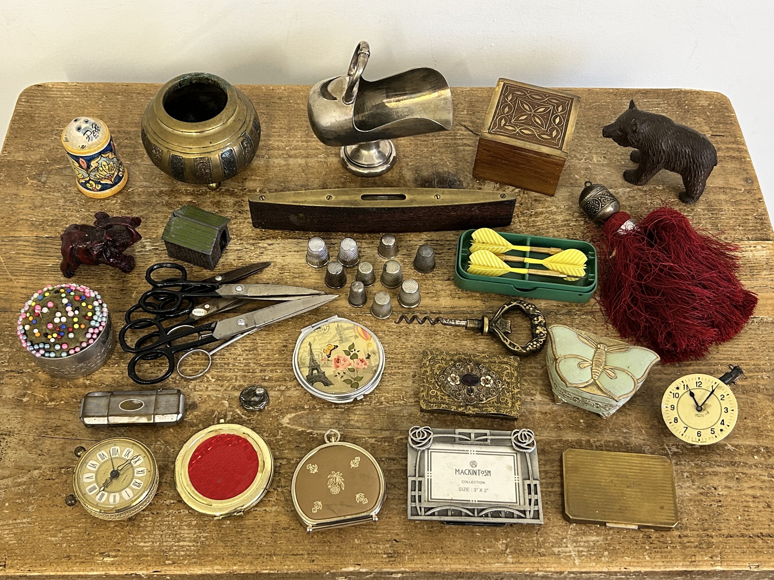 Various mixed interesting items including powder compacts, scissors, thimbles etc