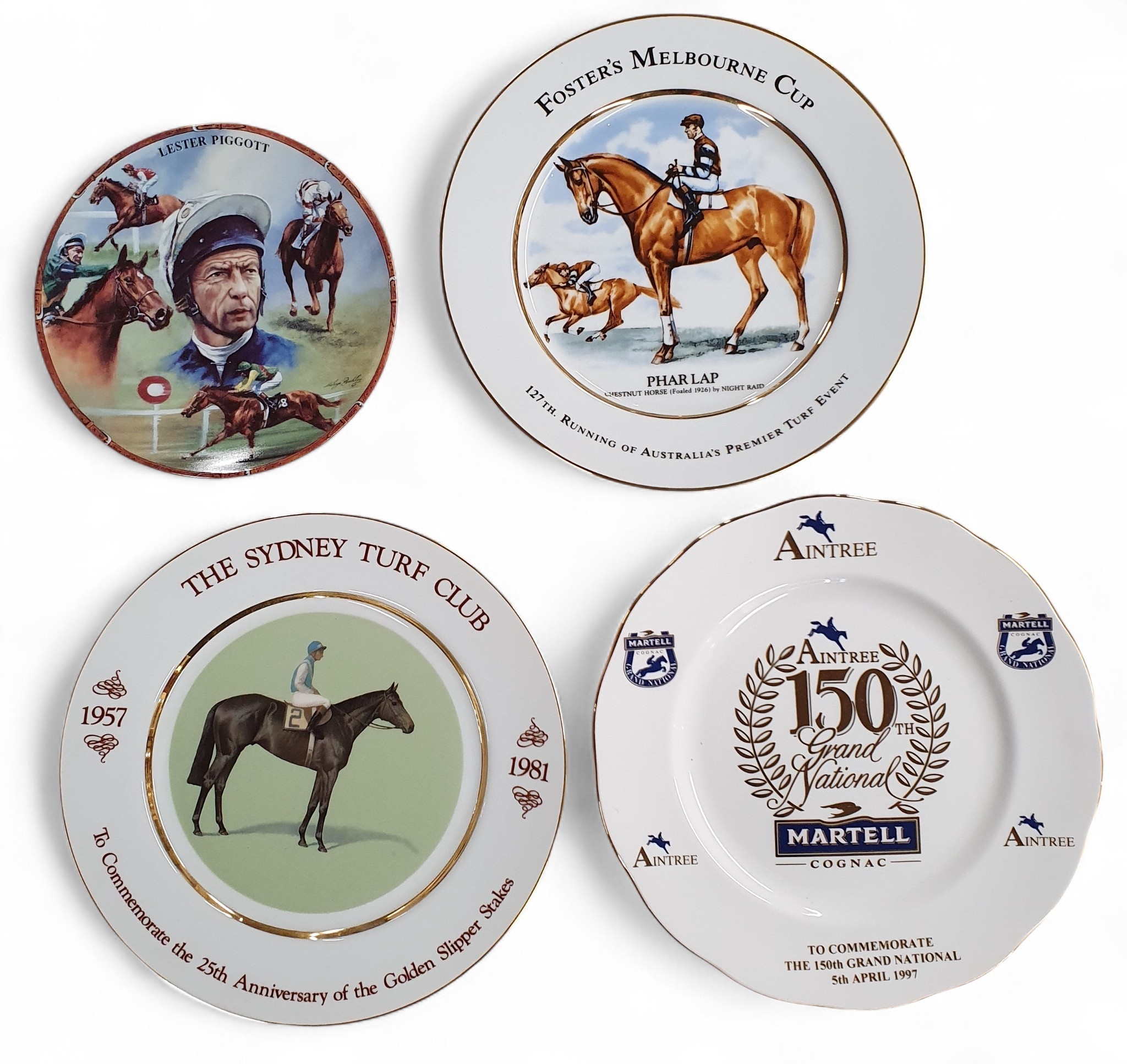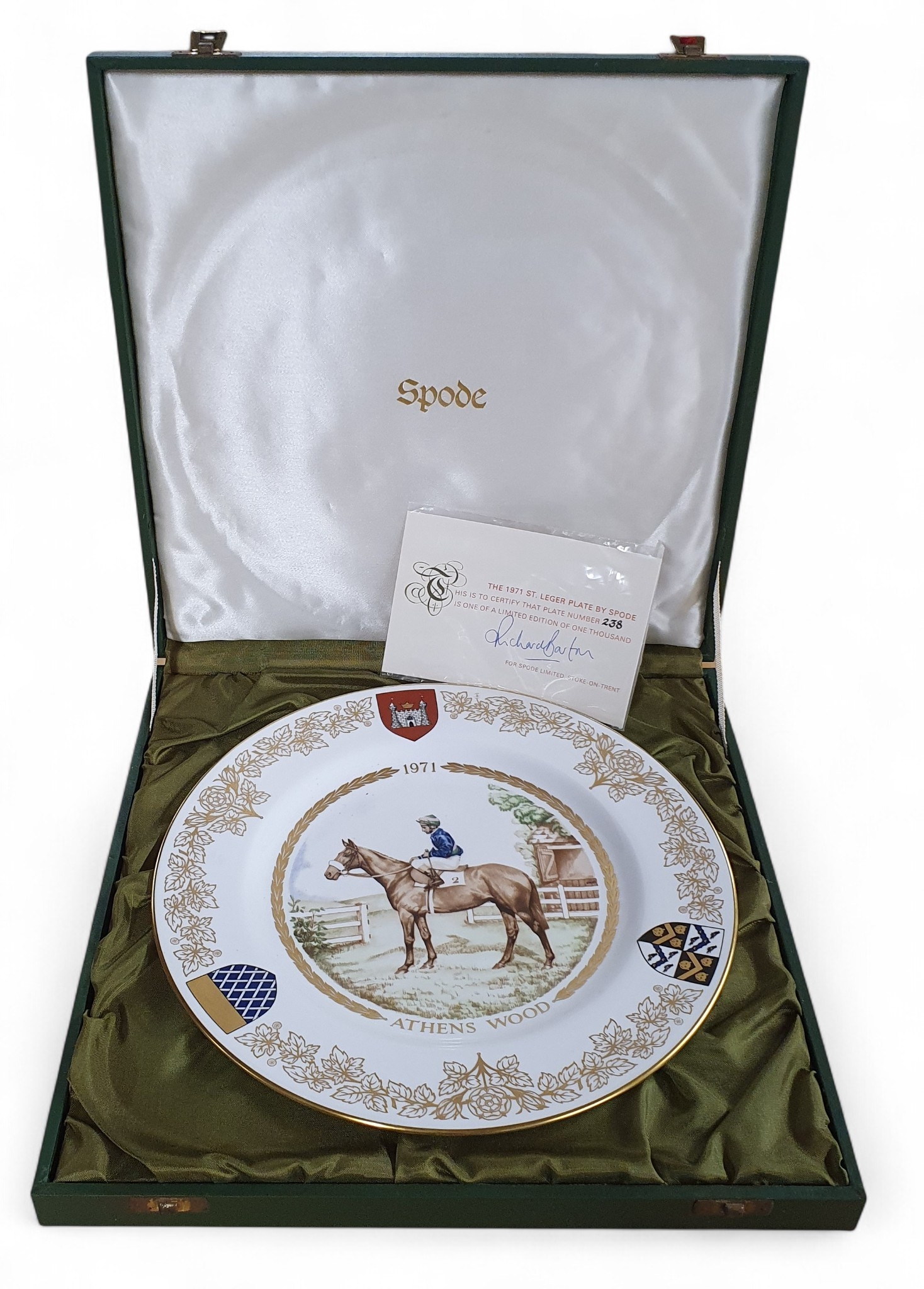 A Spode Commemorative Plate of 'Athens Wood' boxed along with four further race related collector's plates. D 27 cm approx.