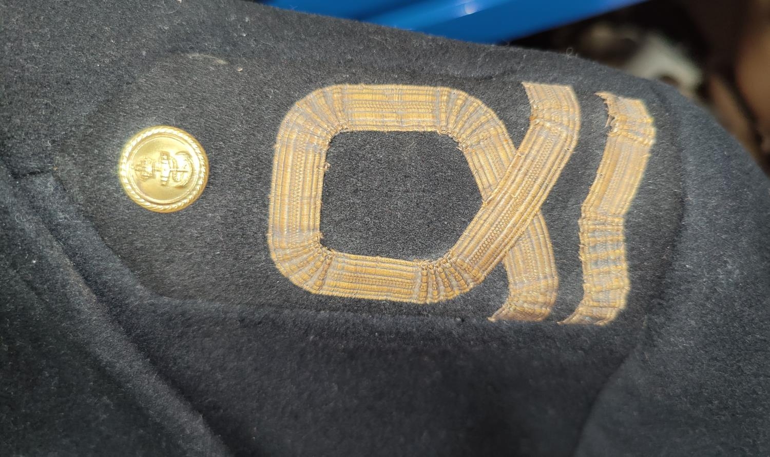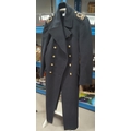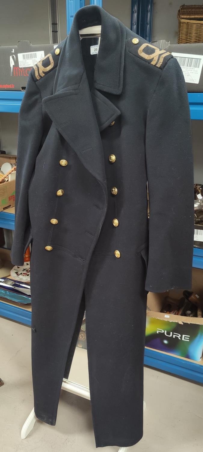 A Navy style great coat in dark blue with gilt buttons