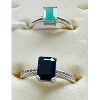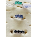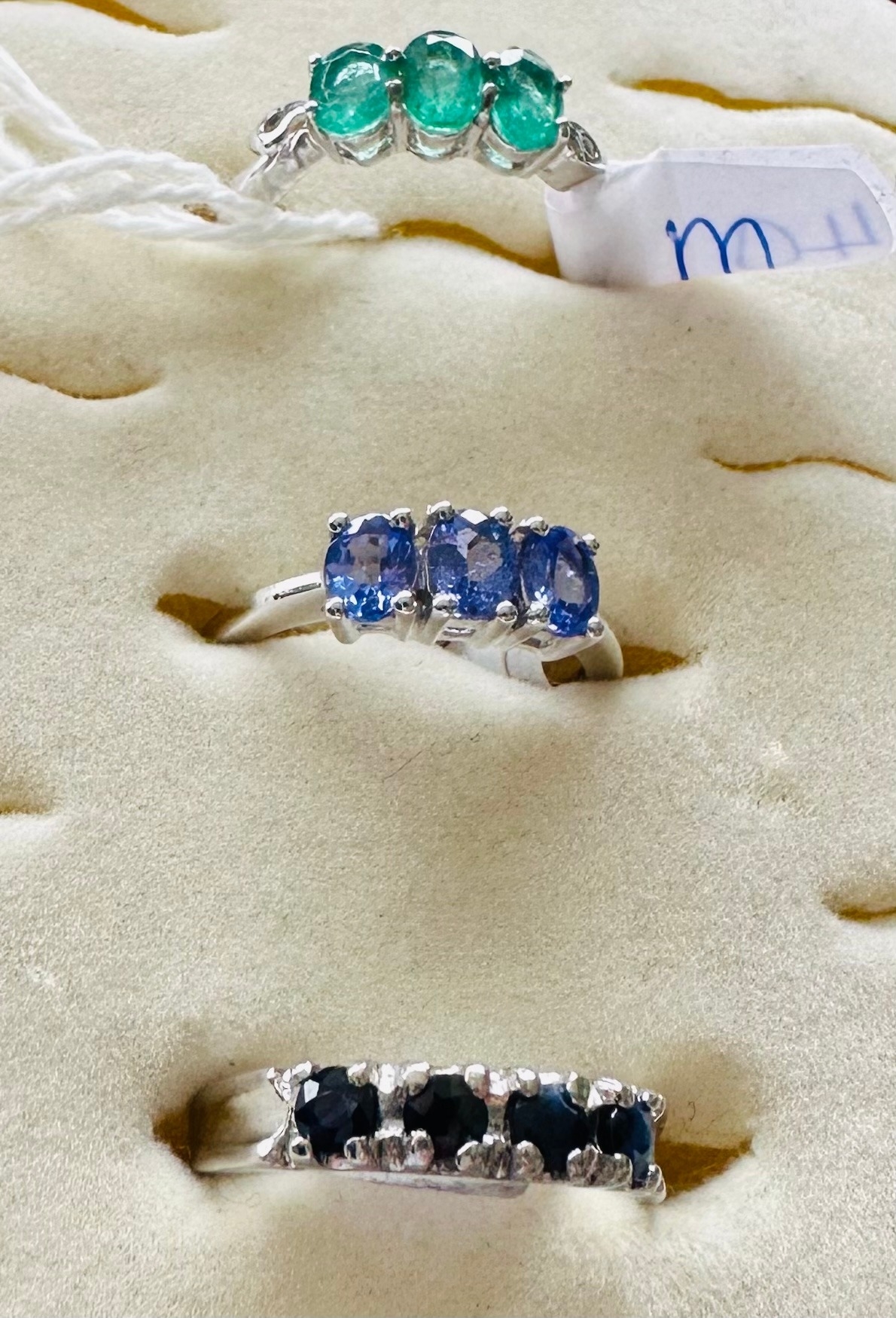 three 925 sterling silver rings, all size M including tanzanite and emerald