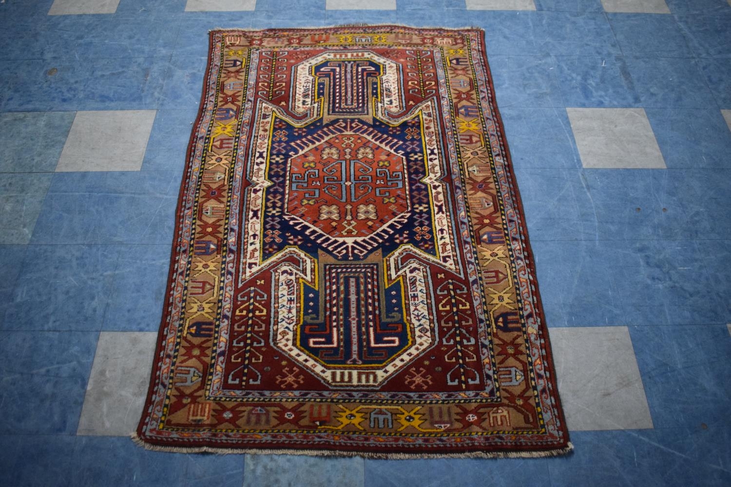 An Antique Hand-Made Kazak Rug, 172 x 112cms