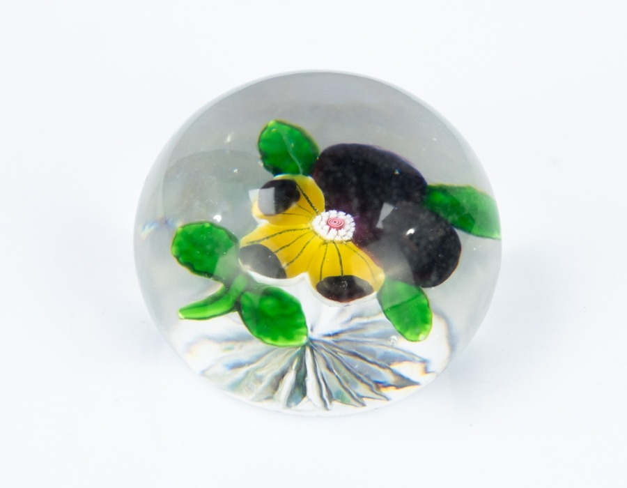 BACCARAT PANSY MINIATURE GLASS PAPERWEIGHT, with star cut ba...
