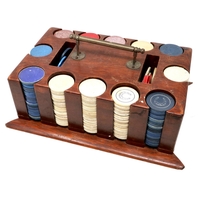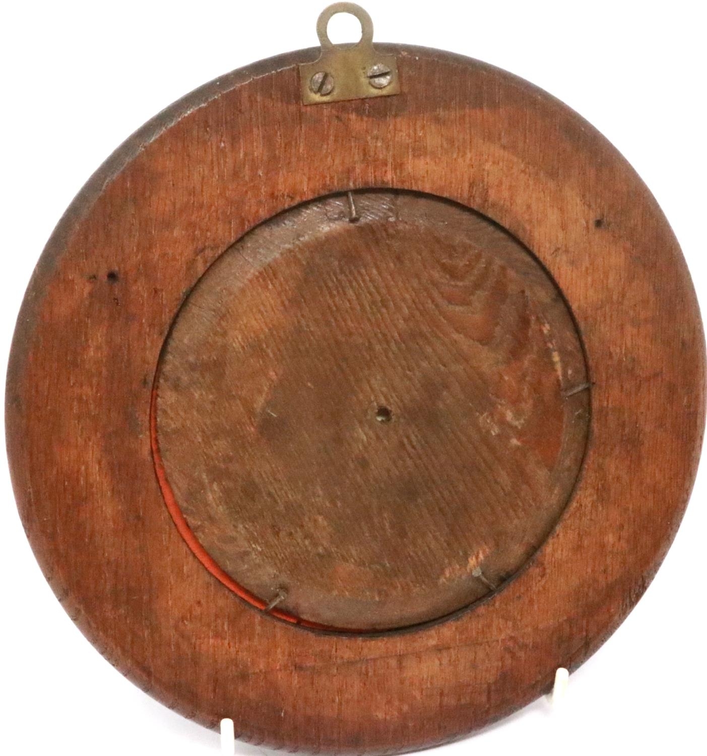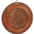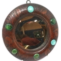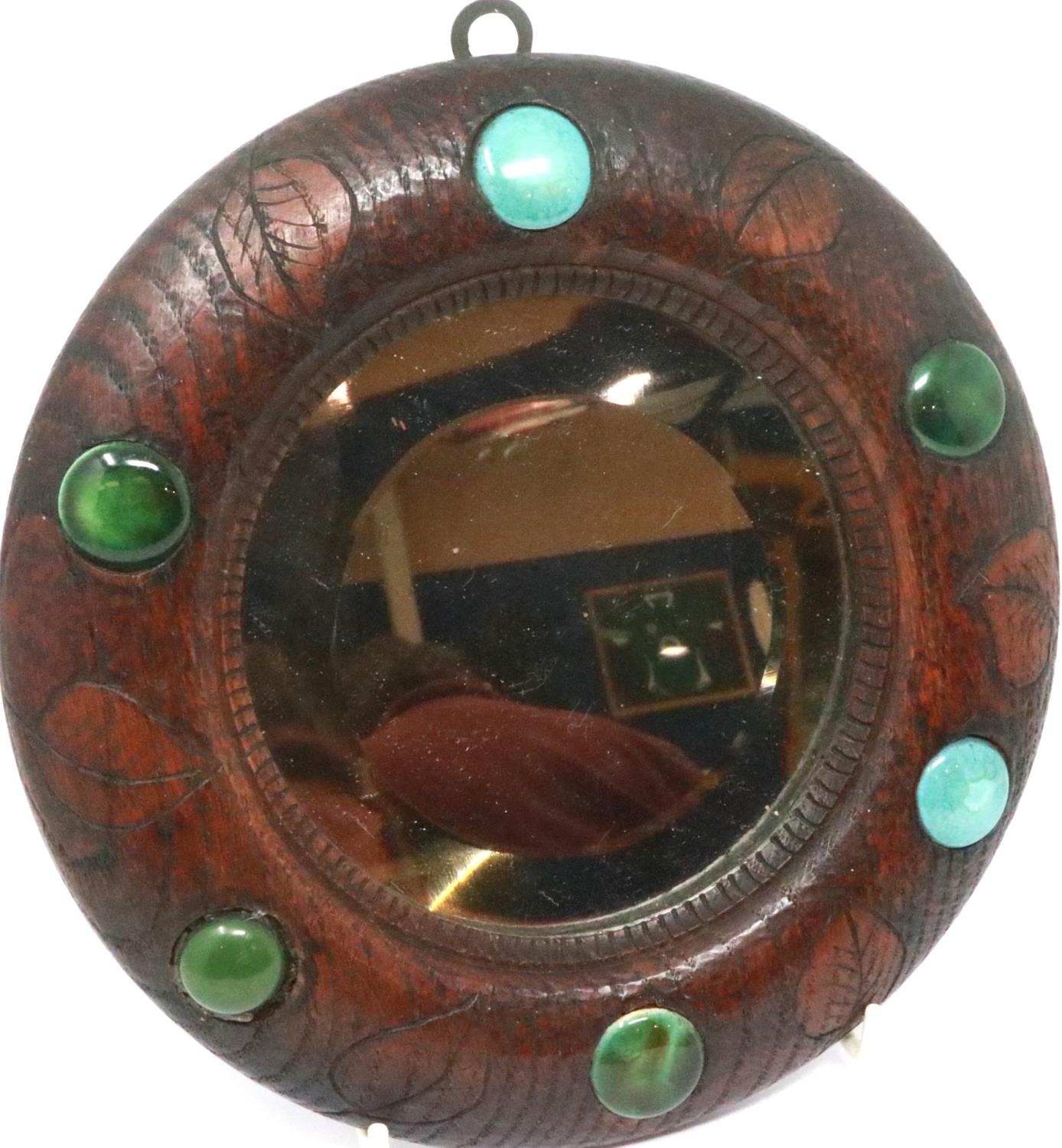 Arts and Crafts wood framed mirror, with six Ruskin style panels surmounted, D: 23 cm. P&P Group 2 (£18+VAT for the first lot and £3+VAT for subsequent lots)
