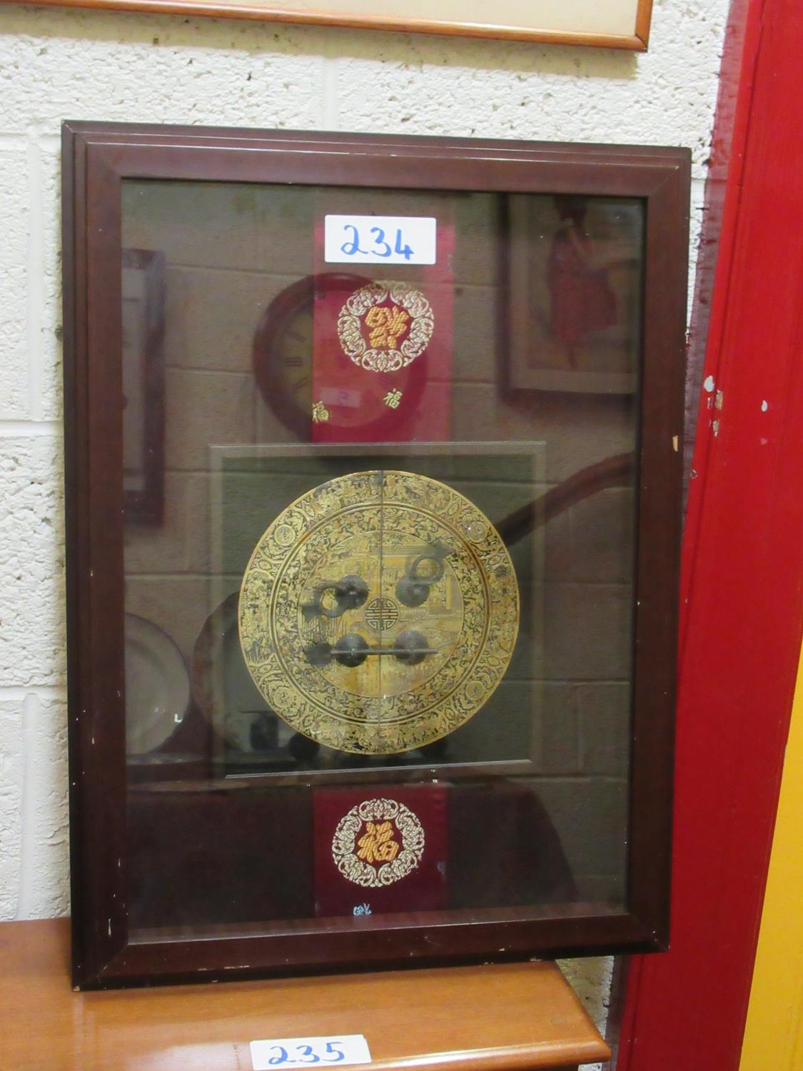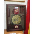 Framed brass plaque plus 2 embroidered sash.